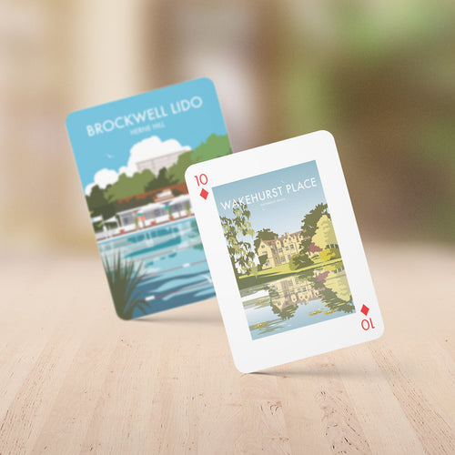Exclusive deck of playing cards feature 54 original illustrations of contemporary Vintage Travel Art by the talented Dave Thompson.