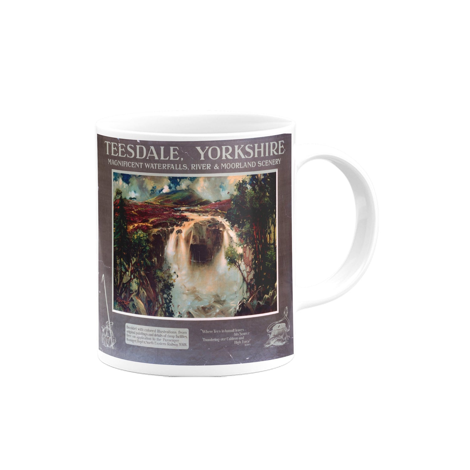 Your favourite Vintage Railway Poster design on a mug. This design of Teesdale, Yorkshire, Magnificent Waterfalls, River and Moorland Scenery is perfect for a nice cup of tea or coffee. Great as a gift to any Railway Poster enthusiast.