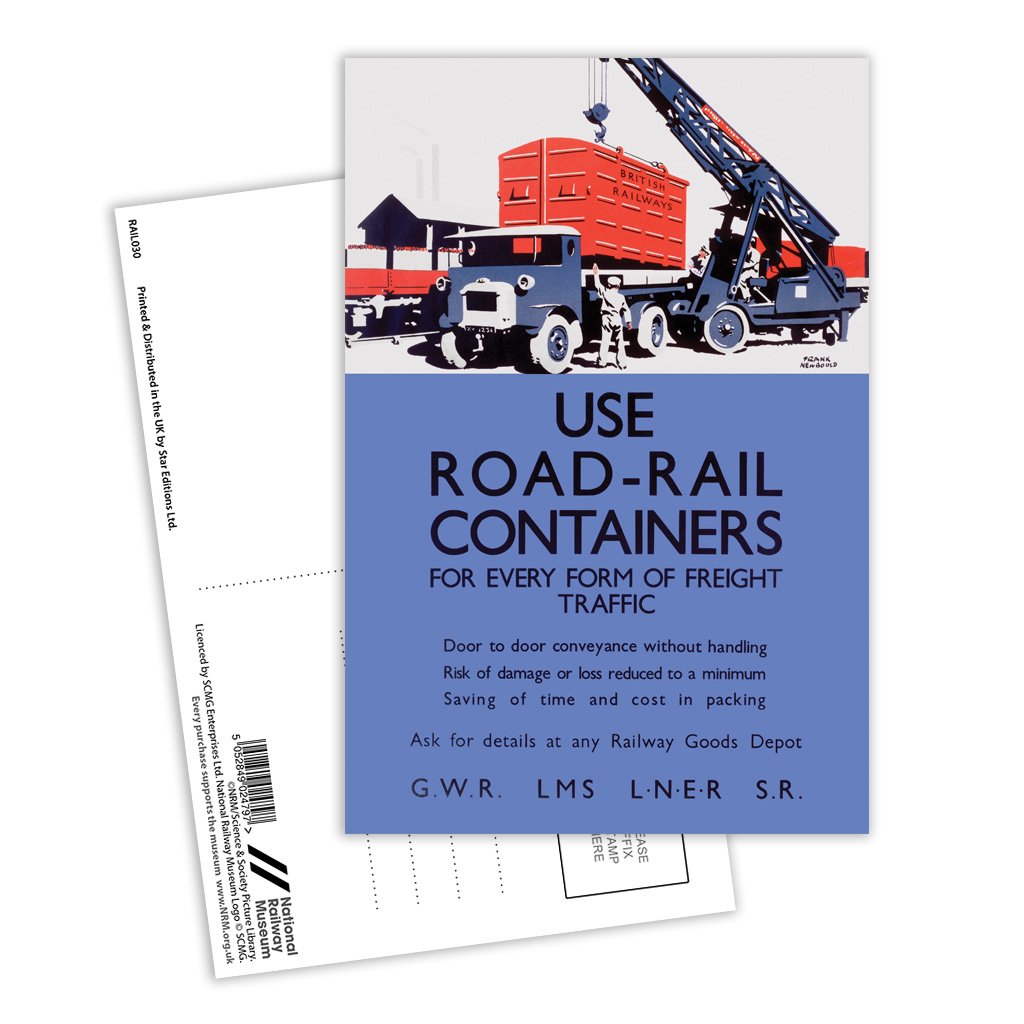 This Vintage Railway Poster postcard pack contains eight postcards. Each printed with the classic poster design of Use Road-Rail Containers For Every Form Of Freight Traffic. All Railway Poster postcards are made from sustainable materials and is FSC accredited.