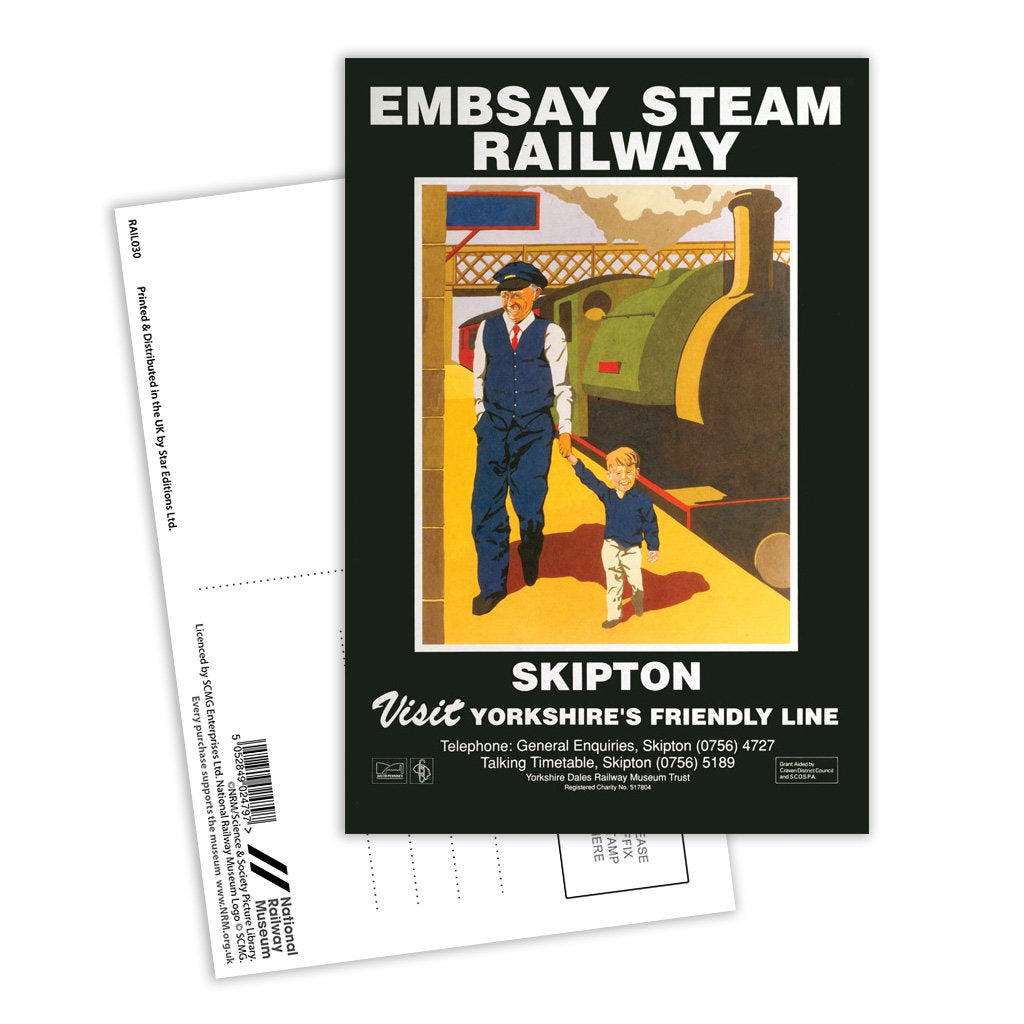 This Vintage Railway Poster postcard pack contains eight postcards. Each printed with the classic poster design of Embsay Steam Railway, Skipton. All Railway Poster postcards are made from sustainable materials and is FSC accredited.