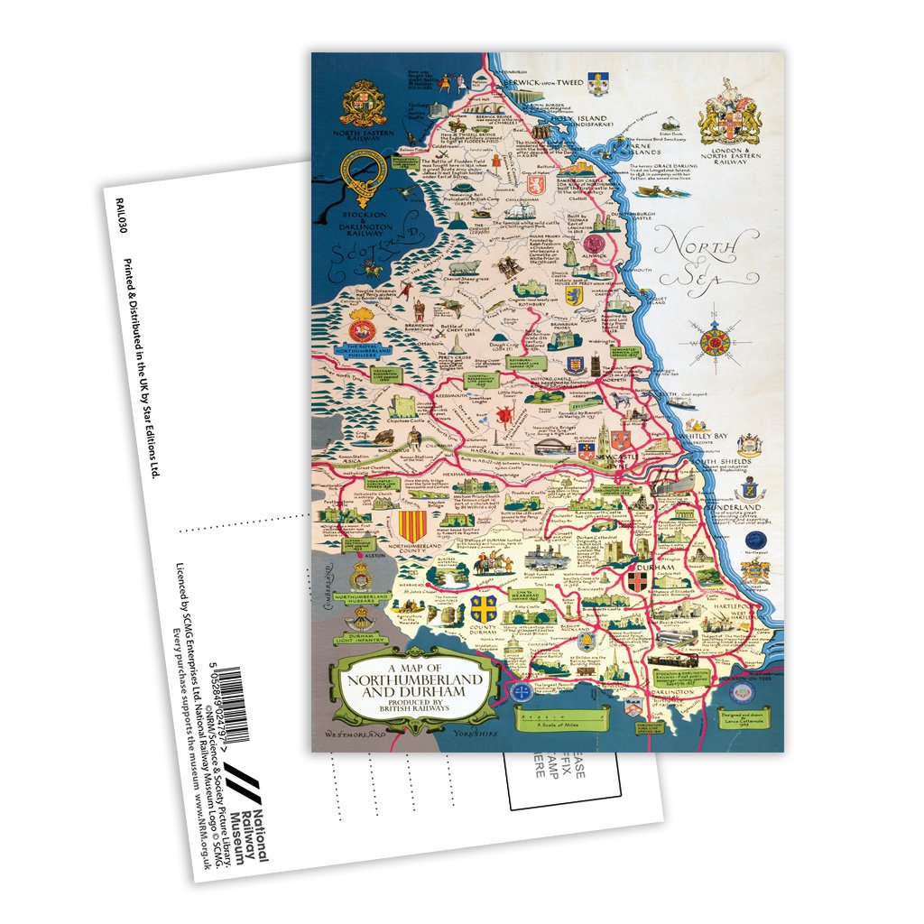 This Vintage Railway Poster postcard pack contains eight postcards. Each printed with the classic poster design of A Map of Northumberland and Durham. All Railway Poster postcards are made from sustainable materials and is FSC accredited.