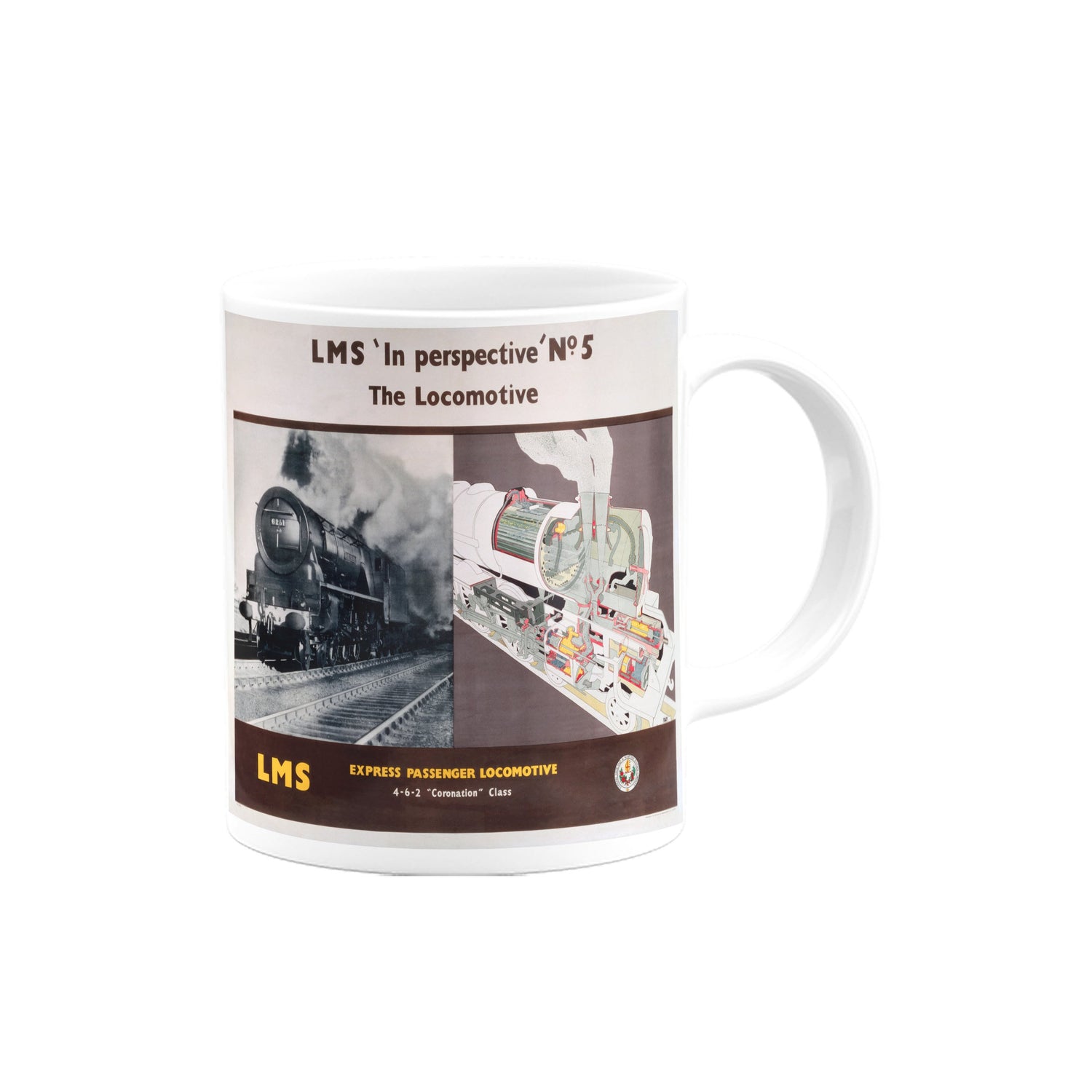 Your favourite Vintage Railway Poster design on a mug. This design of LMS in Perspective n.5 is perfect for a nice cup of tea or coffee. Great as a gift to any Railway Poster enthusiast.
