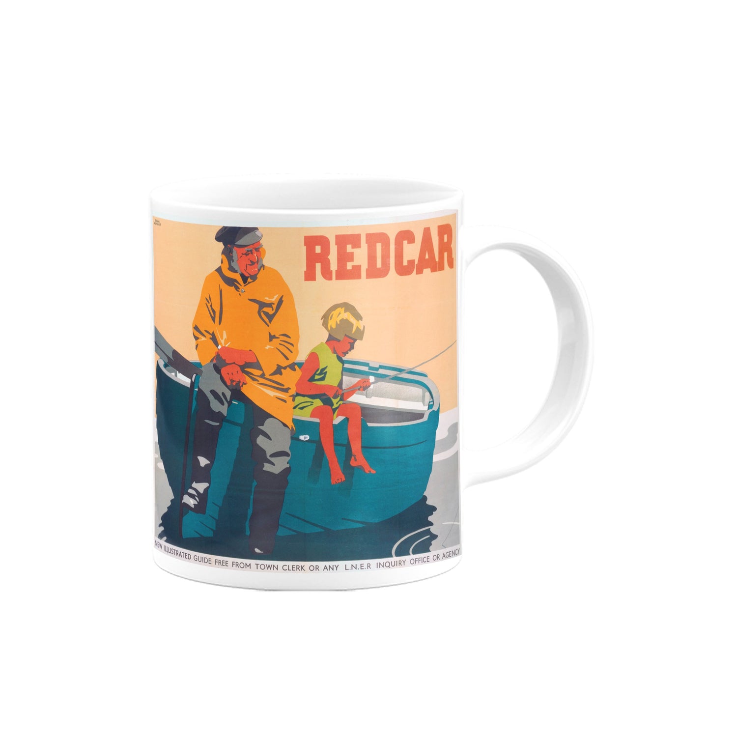 Your favourite Vintage Railway Poster design on a mug. This design of Redcar is perfect for a nice cup of tea or coffee. Great as a gift to any Railway Poster enthusiast.