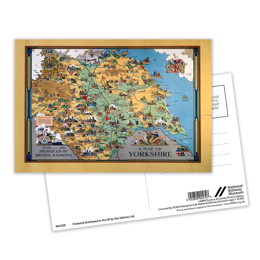 A Map Of Yorkshire, Produced By British Railways Postcard Pack of 8