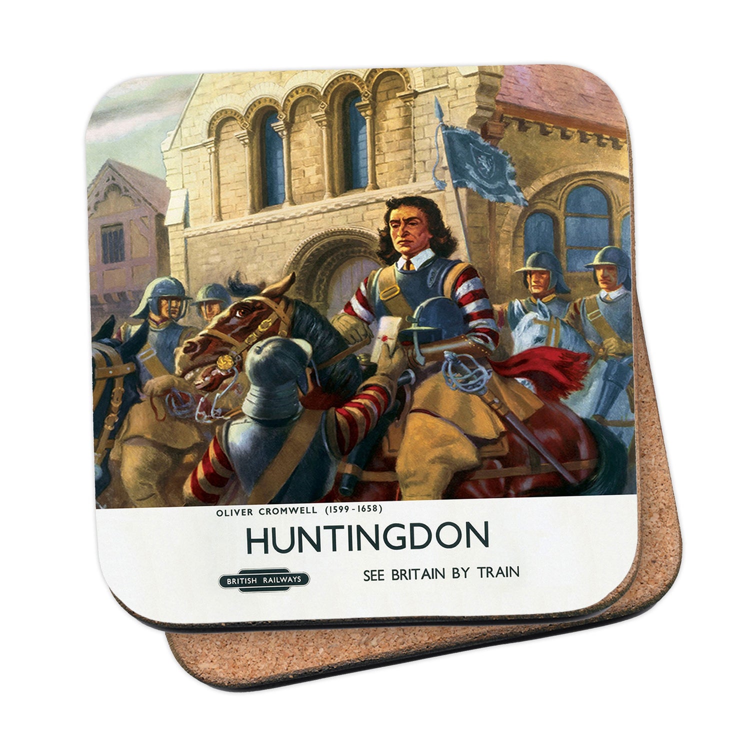 Protect your table surfaces with these durable cork coasters. Beautiful design of Oliver Cromwell Huntingdon. Perfect for any Railway Posters enthusiast.