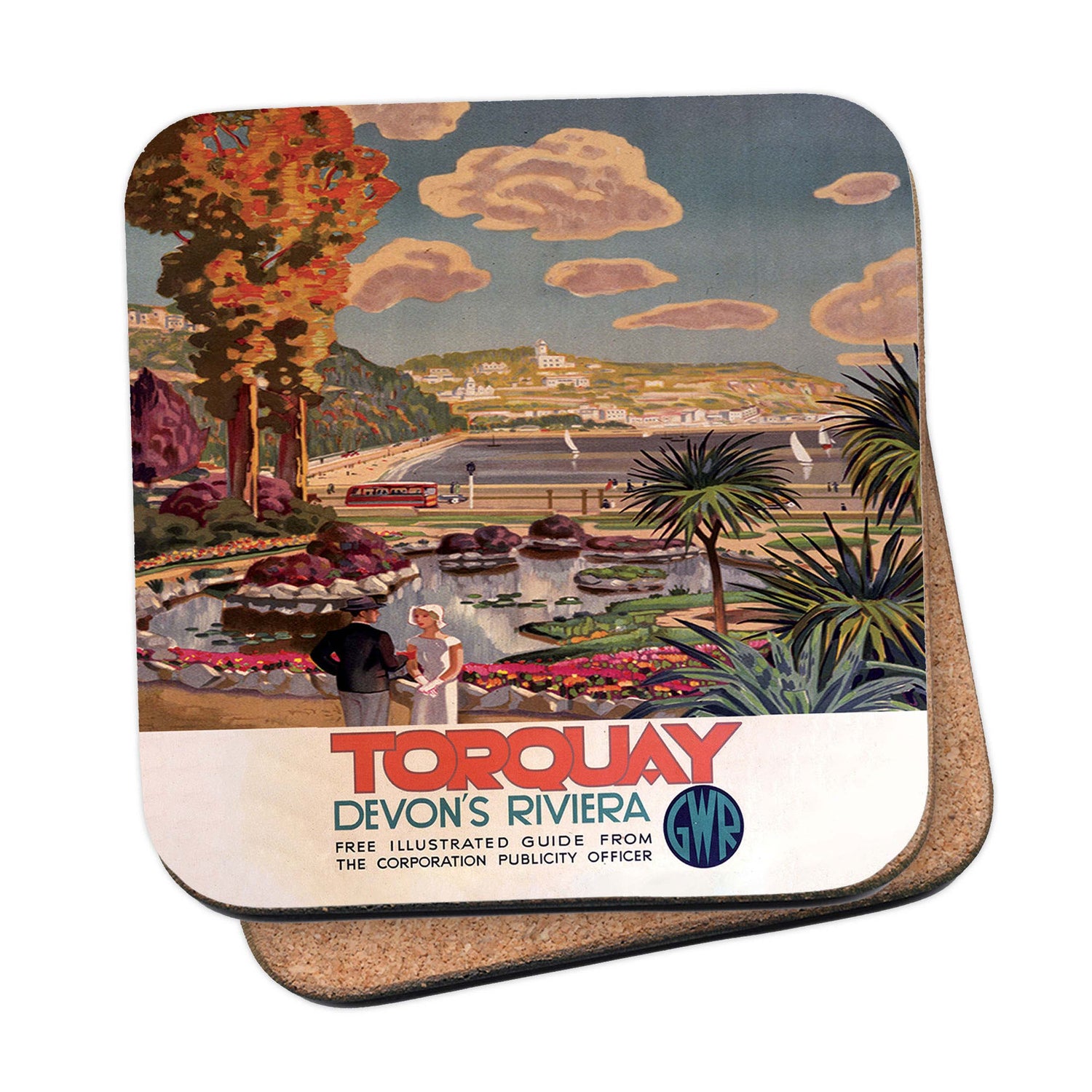 Protect your table surfaces with these durable cork coasters. Beautiful design of Torquay Devon's Riviera. Perfect for any Railway Posters enthusiast.