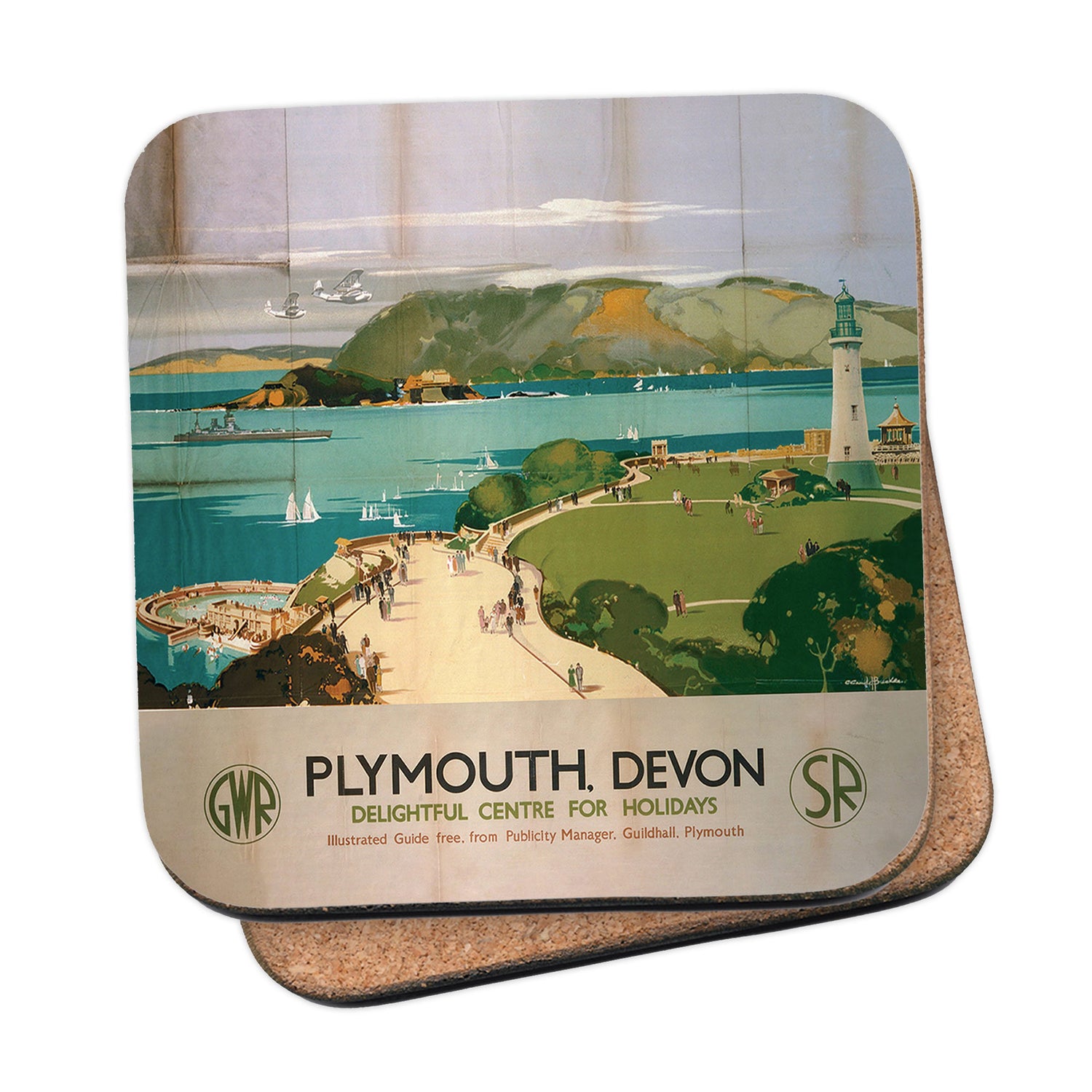 Protect your table surfaces with these durable cork coasters. Beautiful design of Plymouth Devon, Delightful Centre for Holidays. Perfect for any Railway Posters enthusiast.