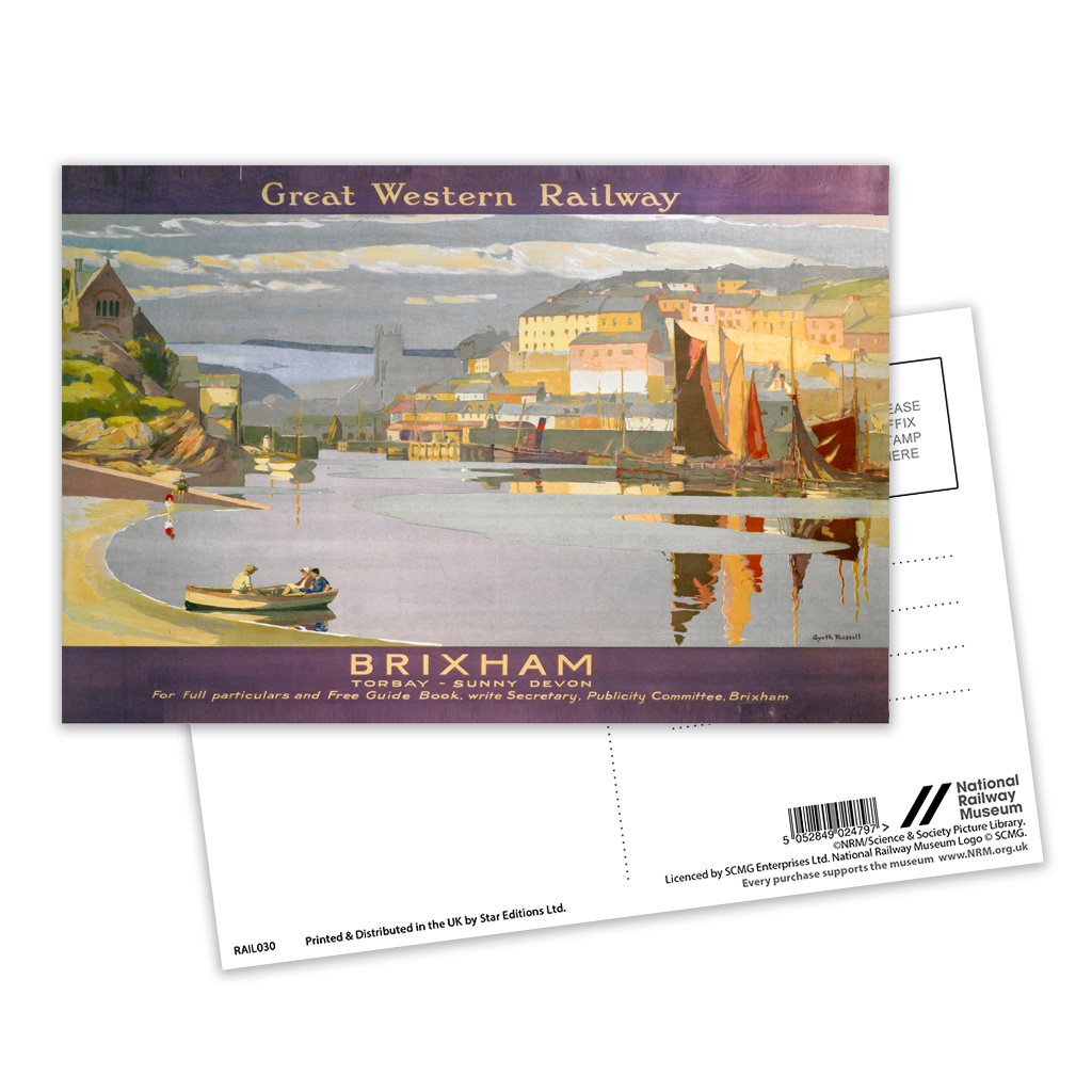 This Vintage Railway Poster postcard pack contains eight postcards. Each printed with the classic poster design of Brixham, Torbay - Sunny Devon. All Railway Poster postcards are made from sustainable materials and is FSC accredited.