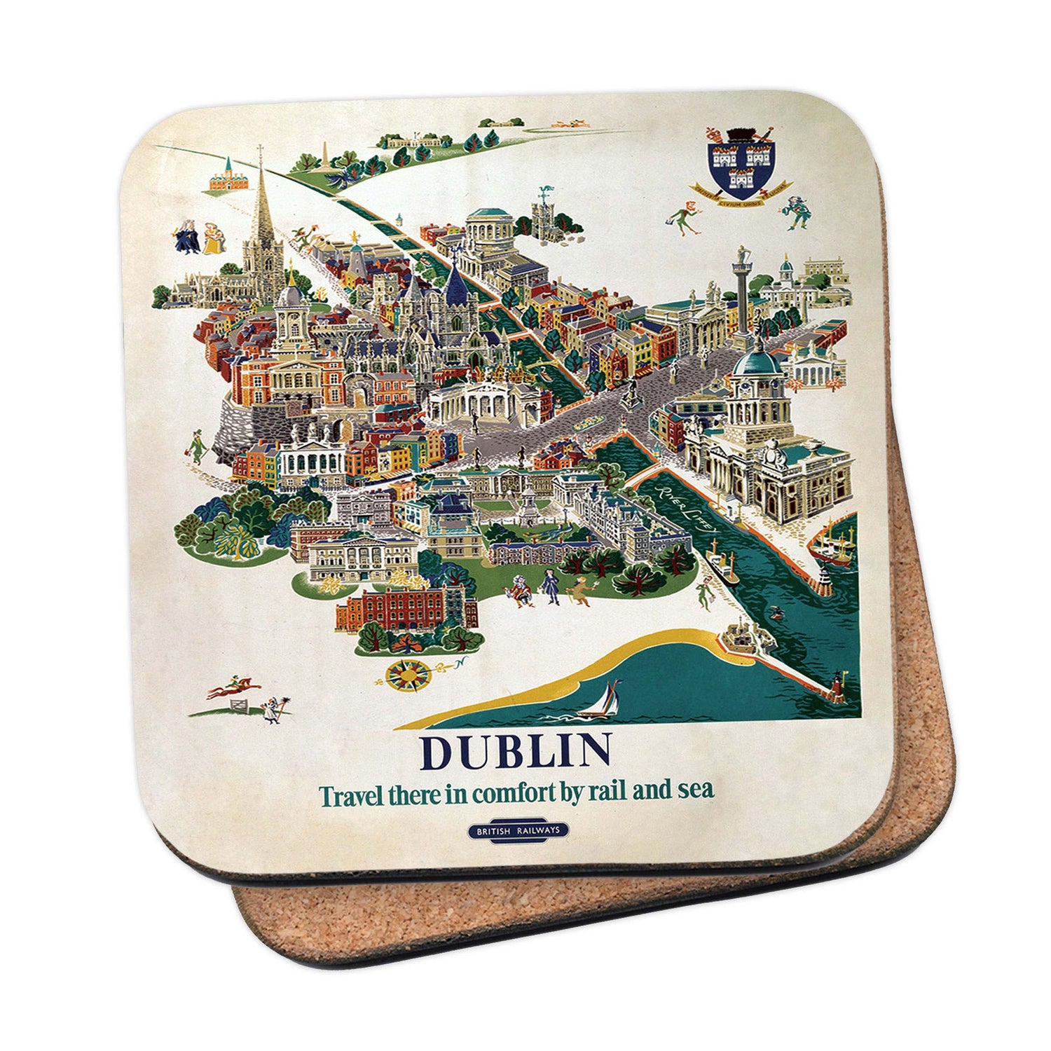 Protect your table surfaces with these durable cork coasters. Beautiful design of Dublin Map - British Railways. Perfect for any Railway Posters enthusiast.