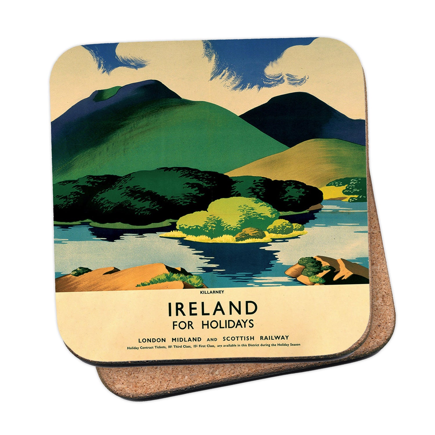 Protect your table surfaces with these durable cork coasters. Beautiful design of Killarney - Ireland for Holidays. Perfect for any Railway Posters enthusiast.