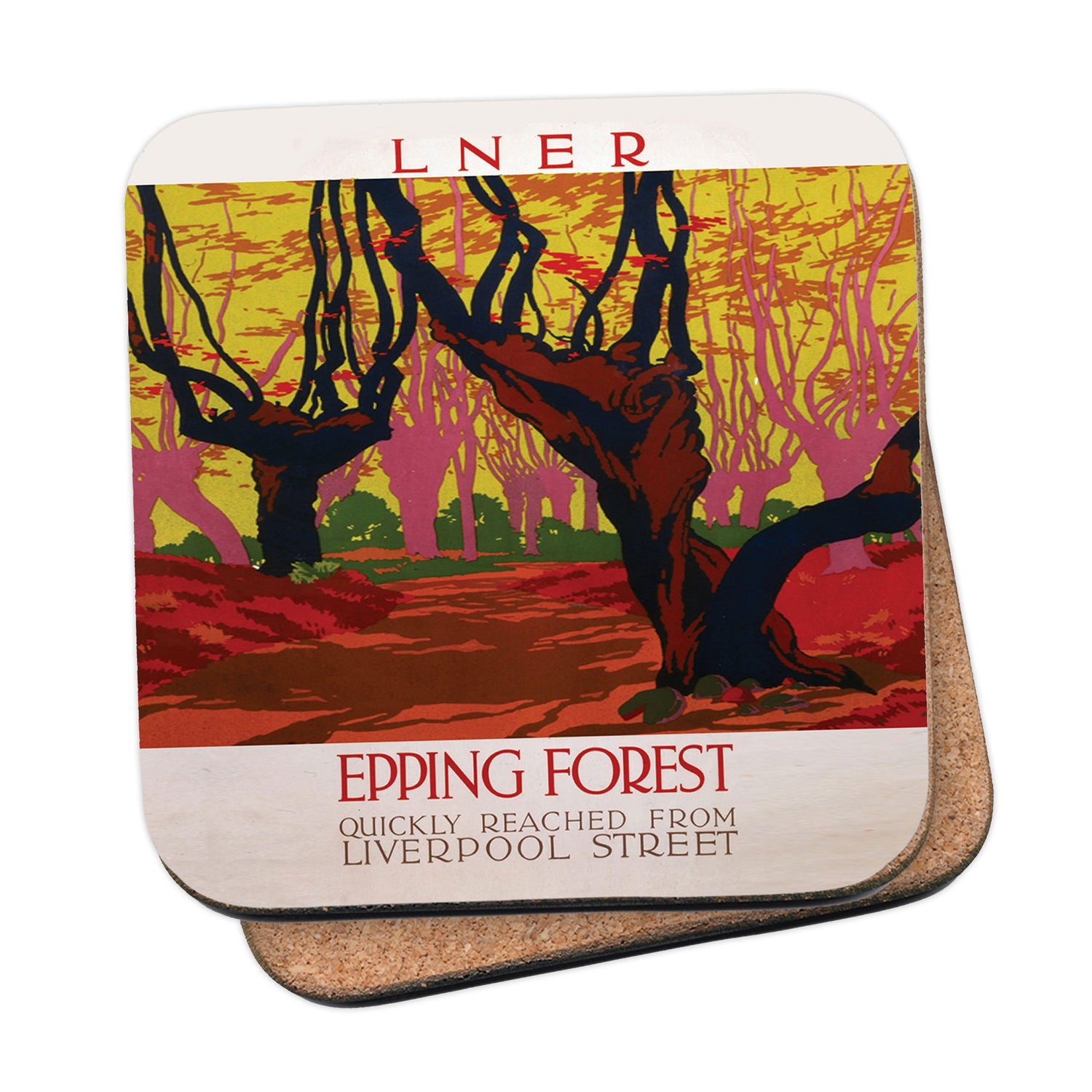 Protect your table surfaces with these durable cork coasters. Beautiful design of Epping Forest Quickly Reached. Perfect for any Railway Posters enthusiast.