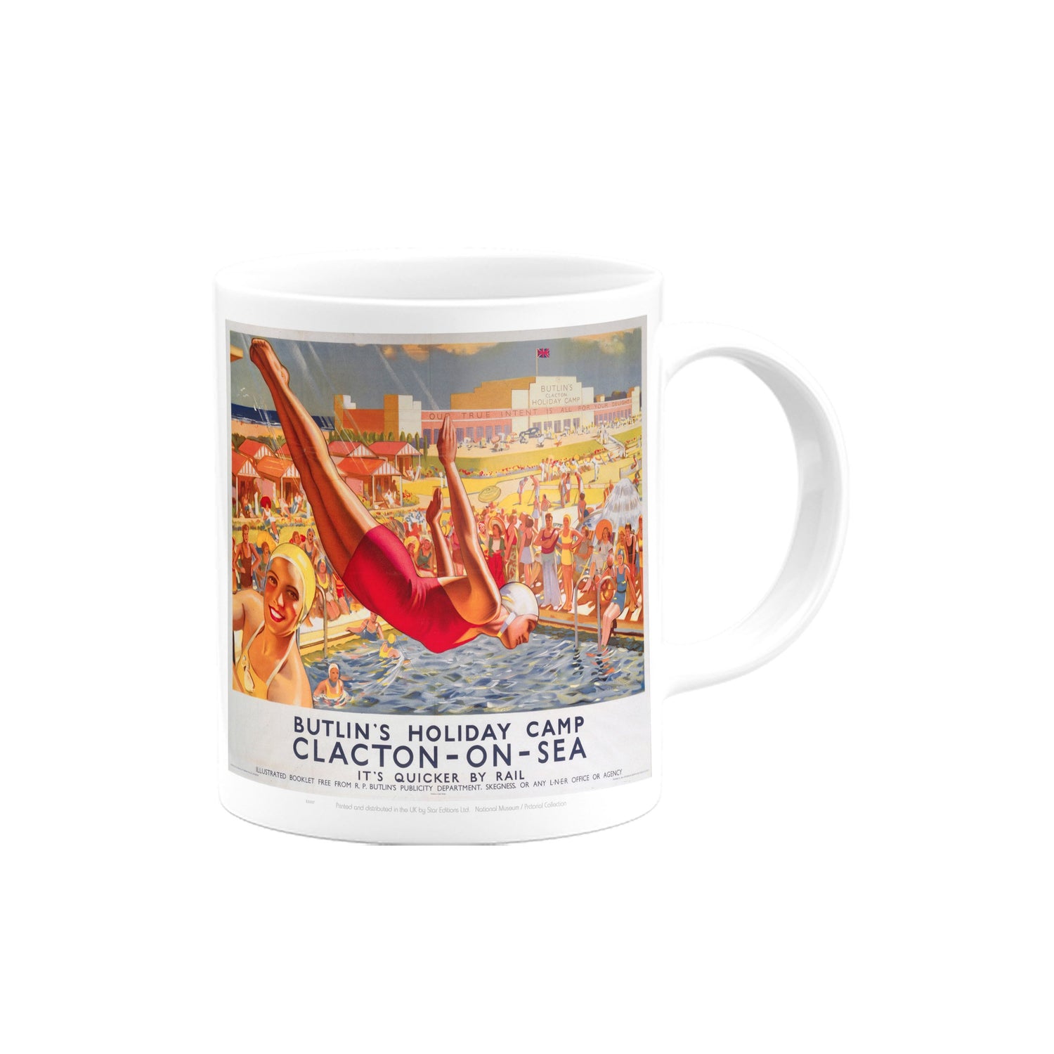 Your favourite Vintage Railway Poster design on a mug. This design of Butlin's Holiday Camp, Clacton-on-sea is perfect for a nice cup of tea or coffee. Great as a gift to any Railway Poster enthusiast.