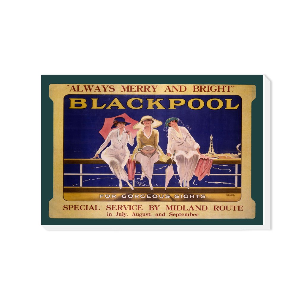 Vintage Railway Poster Canvas Wall Art of Blackpool Three Ladies. Canvases are available in multiple sizes and are all made from eco-friendly FSC accredited materials. All Railway Poster Canvases are made of the best quality materials and are proudly printed in the UK