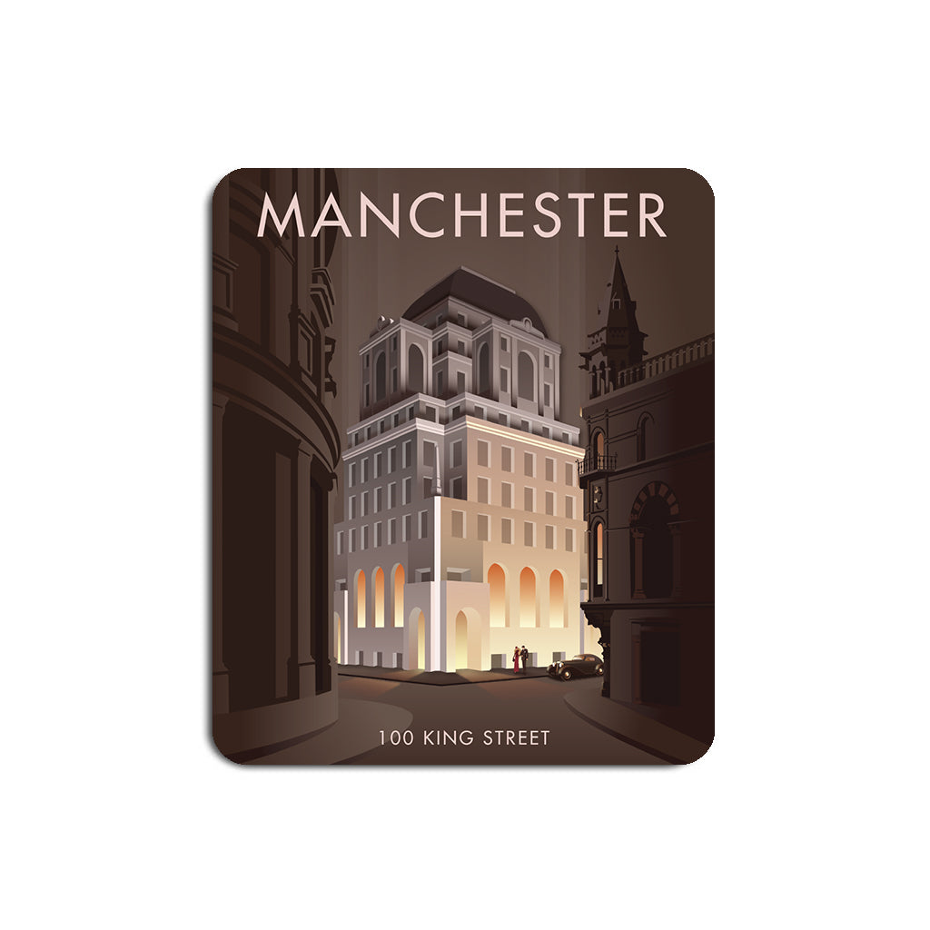 Influenced by the golden age of the travel poster with a modern twist, this image of Manchester is by the superb Stephen Millership