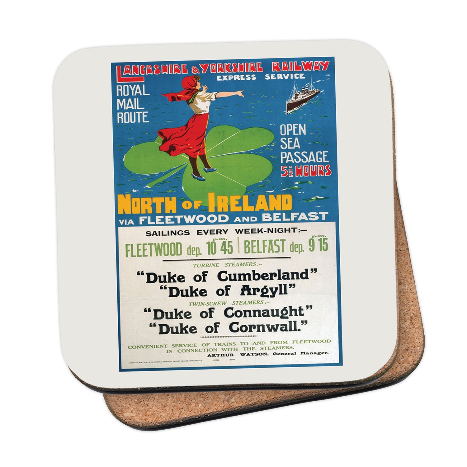 Protect your table surfaces with these durable cork coasters. Beautiful design of North of Ireland via Fleetwood and Belfast. Perfect for any Railway Posters enthusiast.
