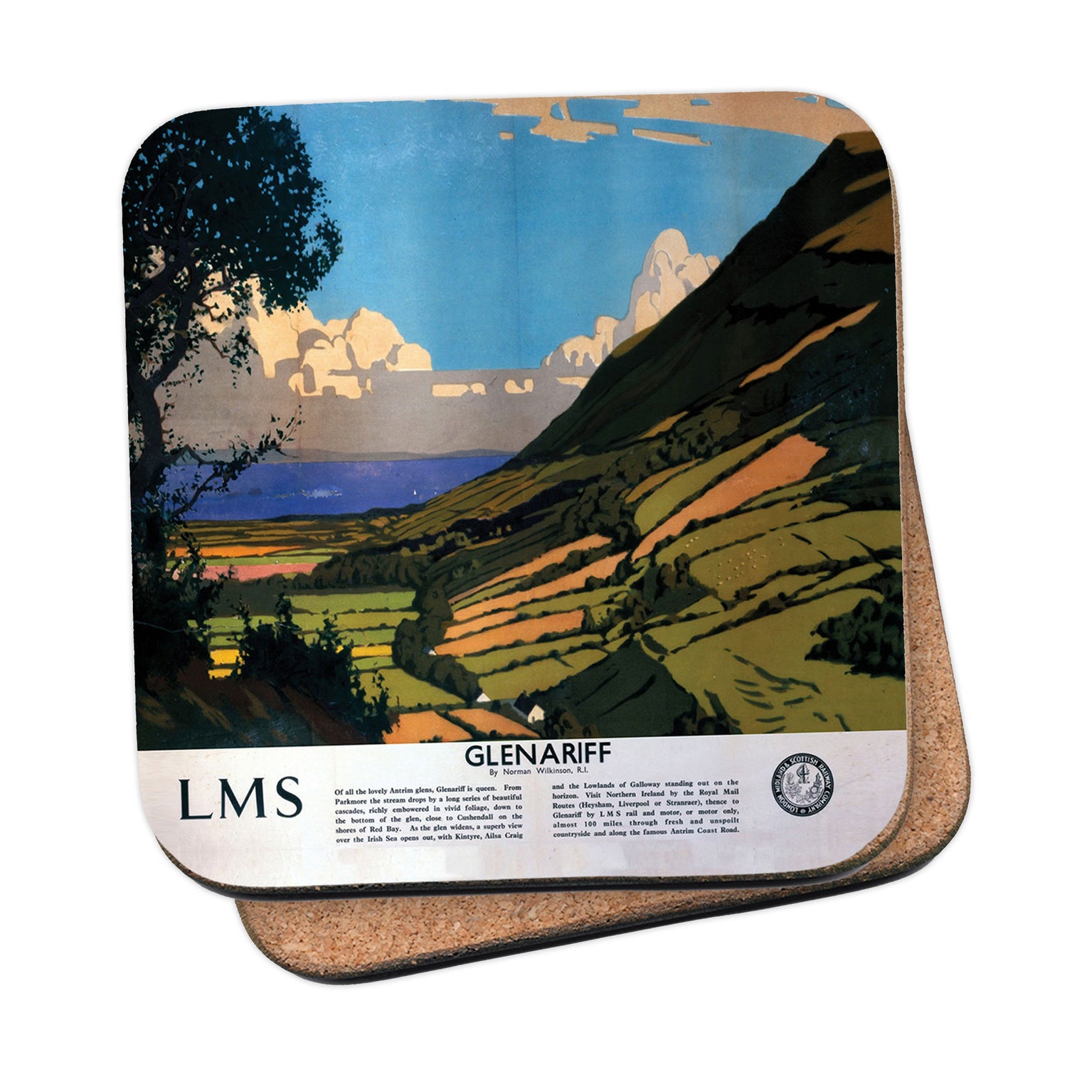 Protect your table surfaces with these durable cork coasters. Beautiful design of Glenariff LMS. Perfect for any Railway Posters enthusiast.