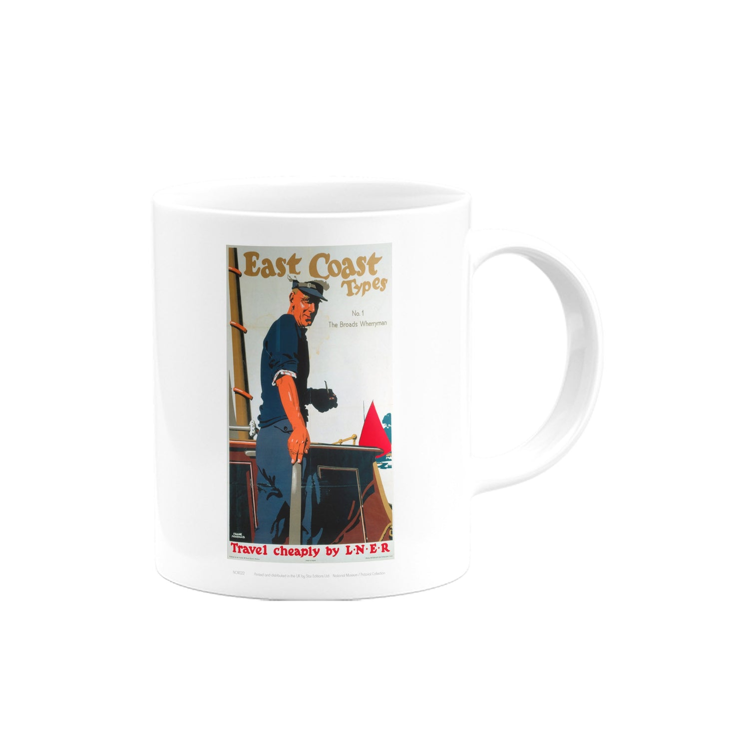 Your favourite Vintage Railway Poster design on a mug. This design of East Coast Types No 1 The Broads Wherryman is perfect for a nice cup of tea or coffee. Great as a gift to any Railway Poster enthusiast.