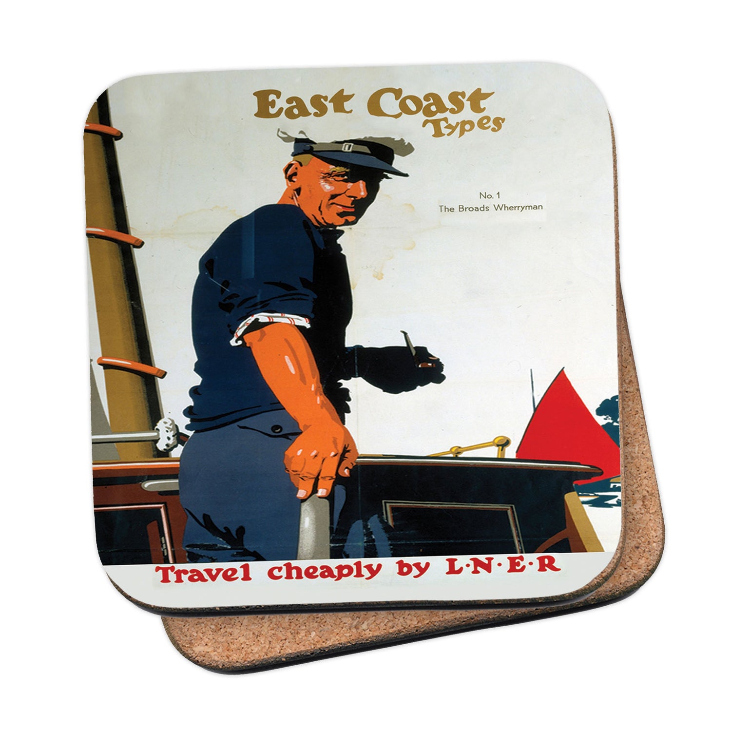 Protect your table surfaces with these durable cork coasters. Beautiful design of East Coast Types No 1 The Broads Wherryman. Perfect for any Railway Posters enthusiast.
