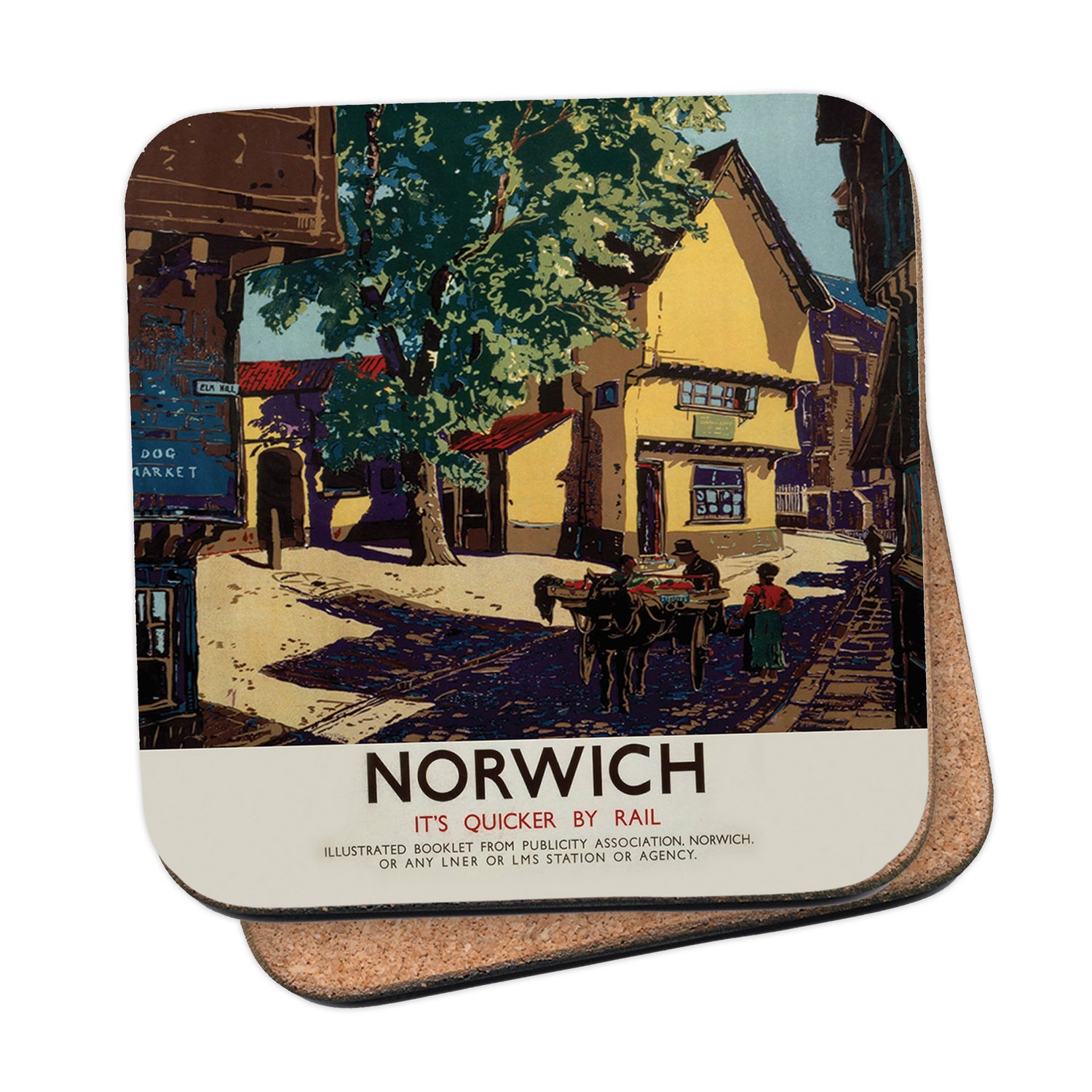 Protect your table surfaces with these durable cork coasters. Beautiful design of Norwich Horse and Cart. Perfect for any Railway Posters enthusiast.