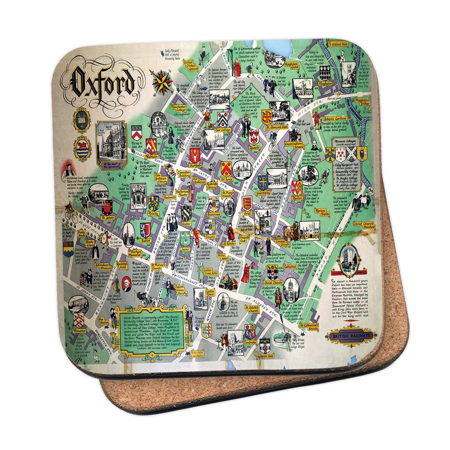Protect your table surfaces with these durable cork coasters. Beautiful design of Oxford Map. Perfect for any Railway Posters enthusiast.