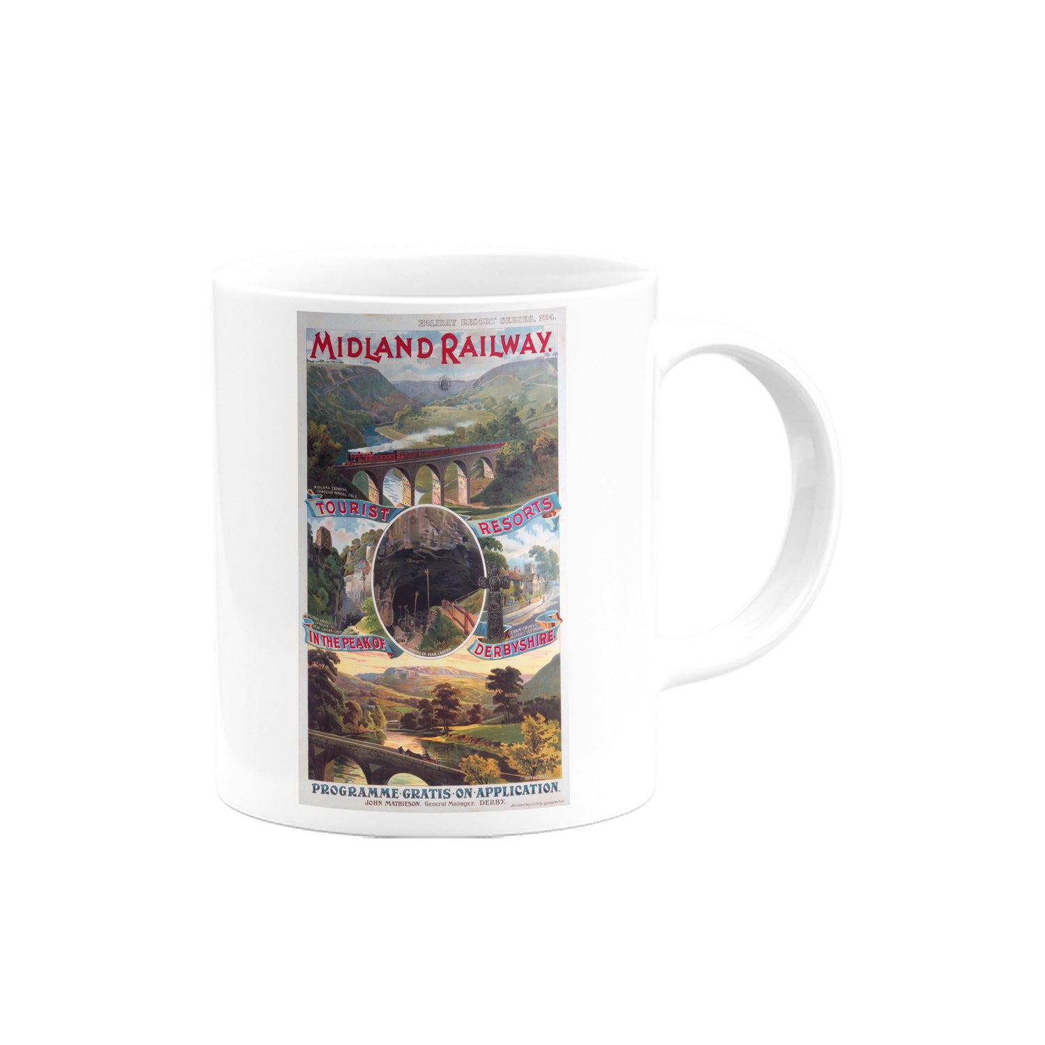 Your favourite Vintage Railway Poster design on a mug. This design of In the peak of Derbyshire Tourist Resorts is perfect for a nice cup of tea or coffee. Great as a gift to any Railway Poster enthusiast.