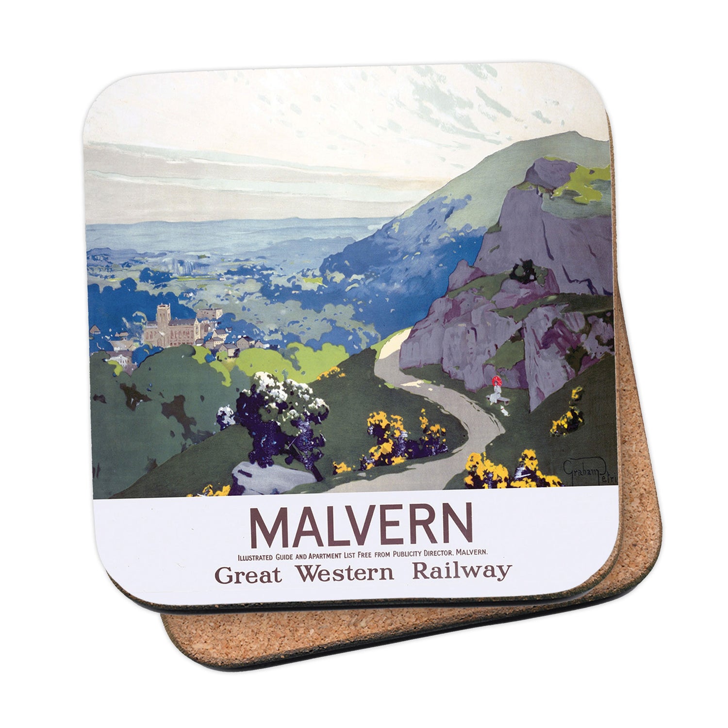 Protect your table surfaces with these durable cork coasters. Beautiful design of Malvern, Great Western Railway. Perfect for any Railway Posters enthusiast.
