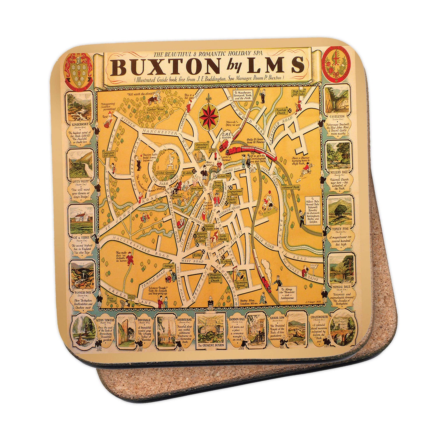 Protect your table surfaces with these durable cork coasters. Beautiful design of Buxton, The Beautiful and Romantic Holiday Spa. Perfect for any Railway Posters enthusiast.