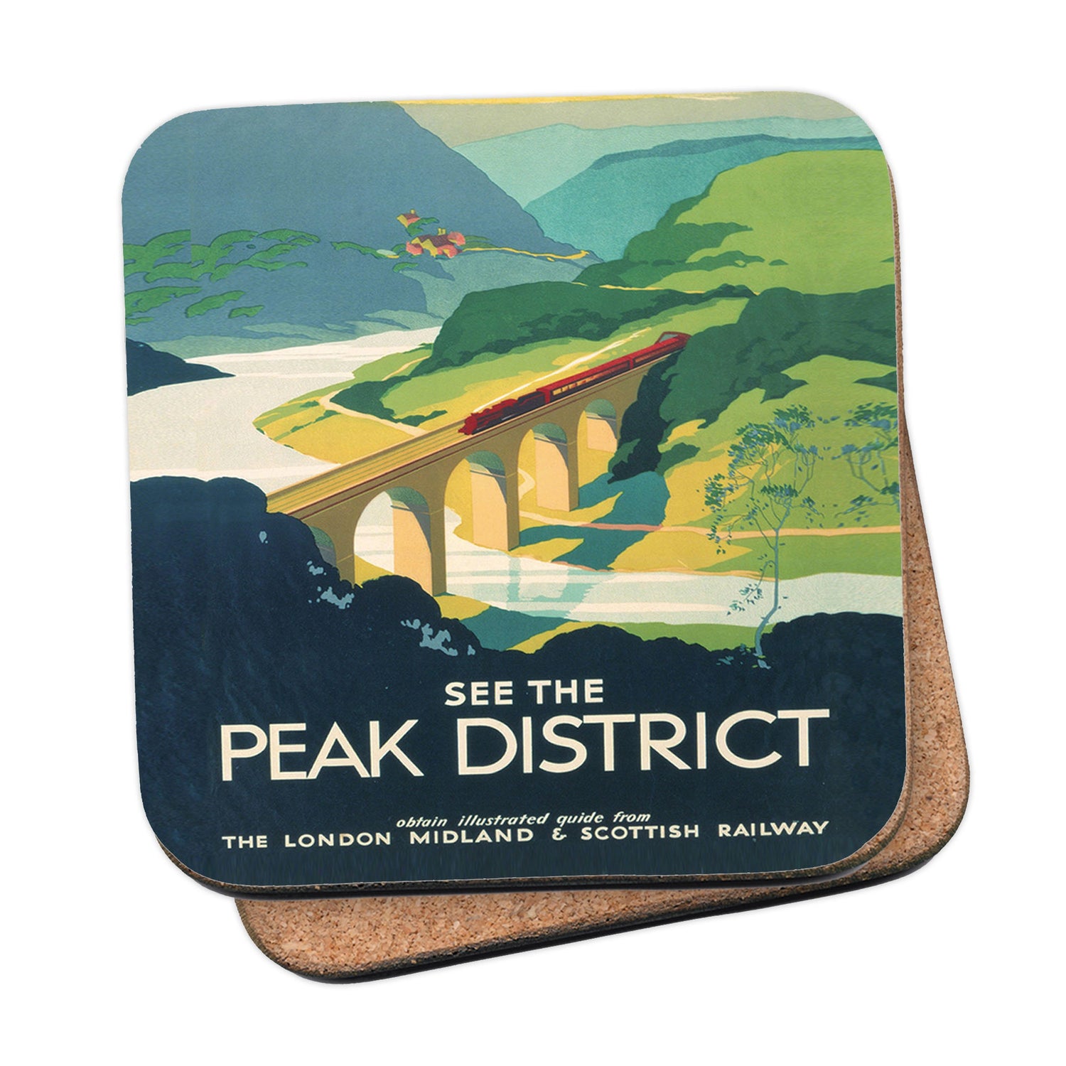 Protect your table surfaces with these durable cork coasters. Beautiful design of See the Peak District. Perfect for any Railway Posters enthusiast.