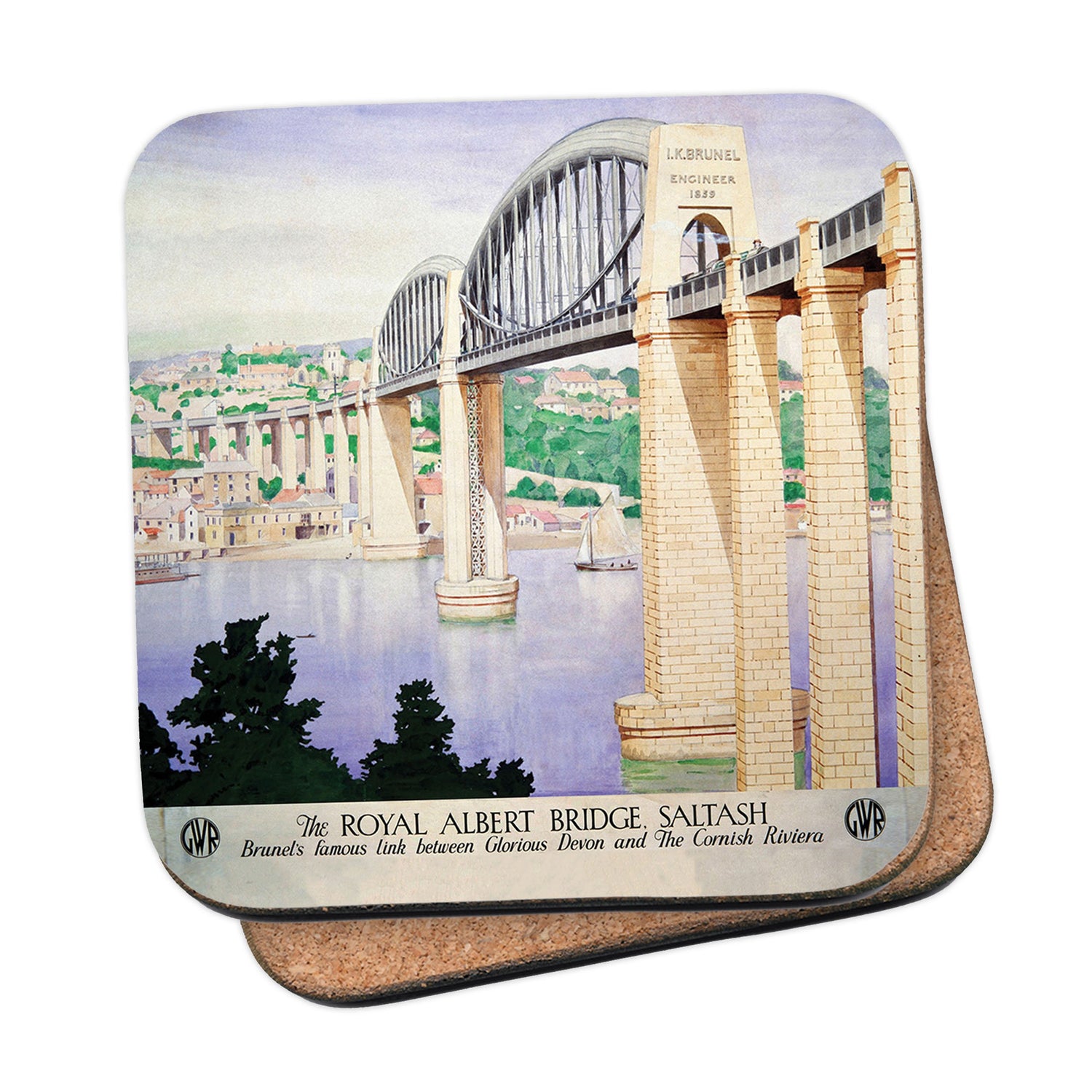 Protect your table surfaces with these durable cork coasters. Beautiful design of The Royal Albert Bridge Saltash. Perfect for any Railway Posters enthusiast.