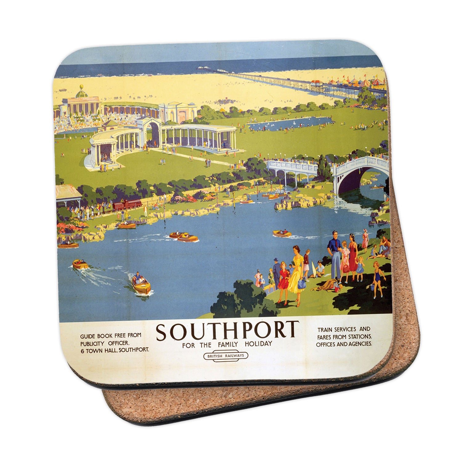 Protect your table surfaces with these durable cork coasters. Beautiful design of Southport for the Family Holiday. Perfect for any Railway Posters enthusiast.