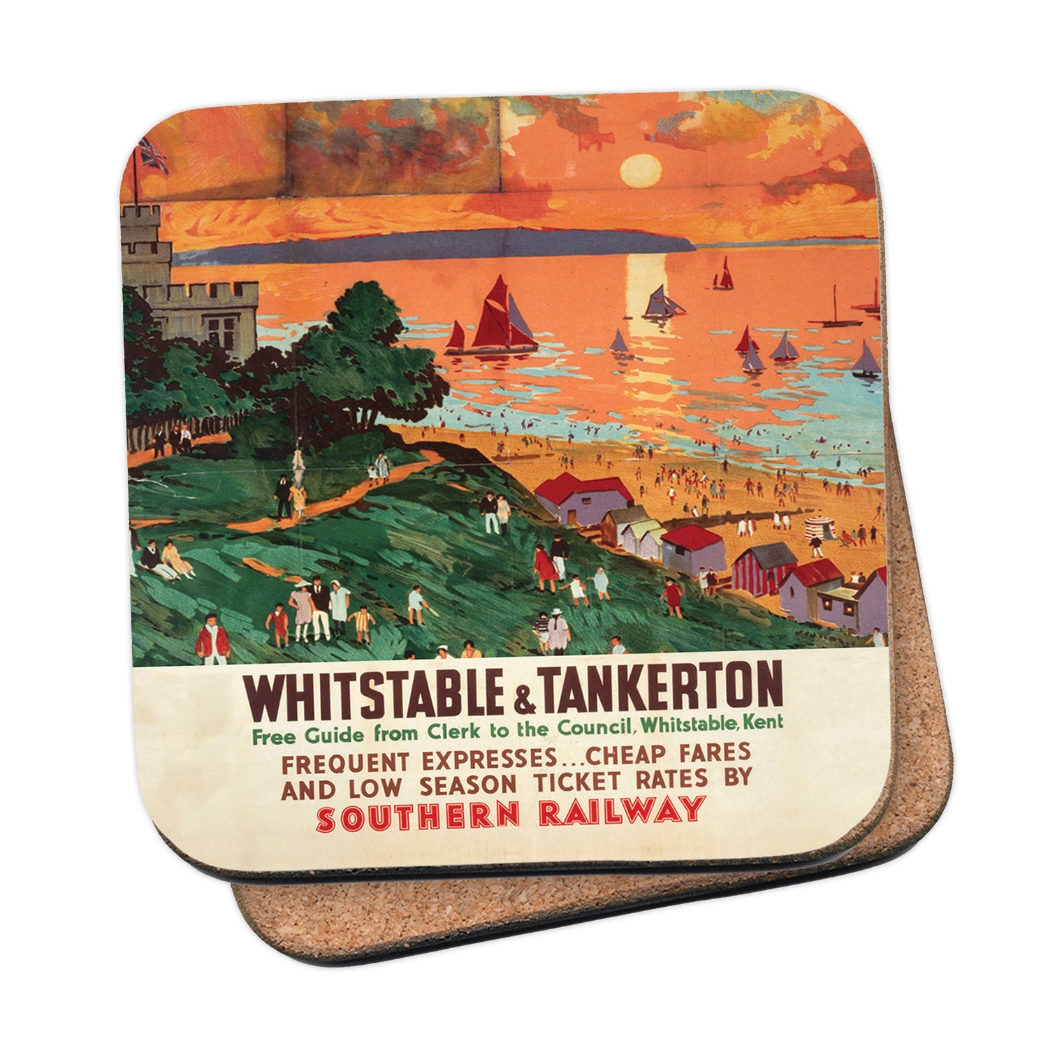 Protect your table surfaces with these durable cork coasters. Beautiful design of Whitstable and Tankerton. Perfect for any Railway Posters enthusiast.