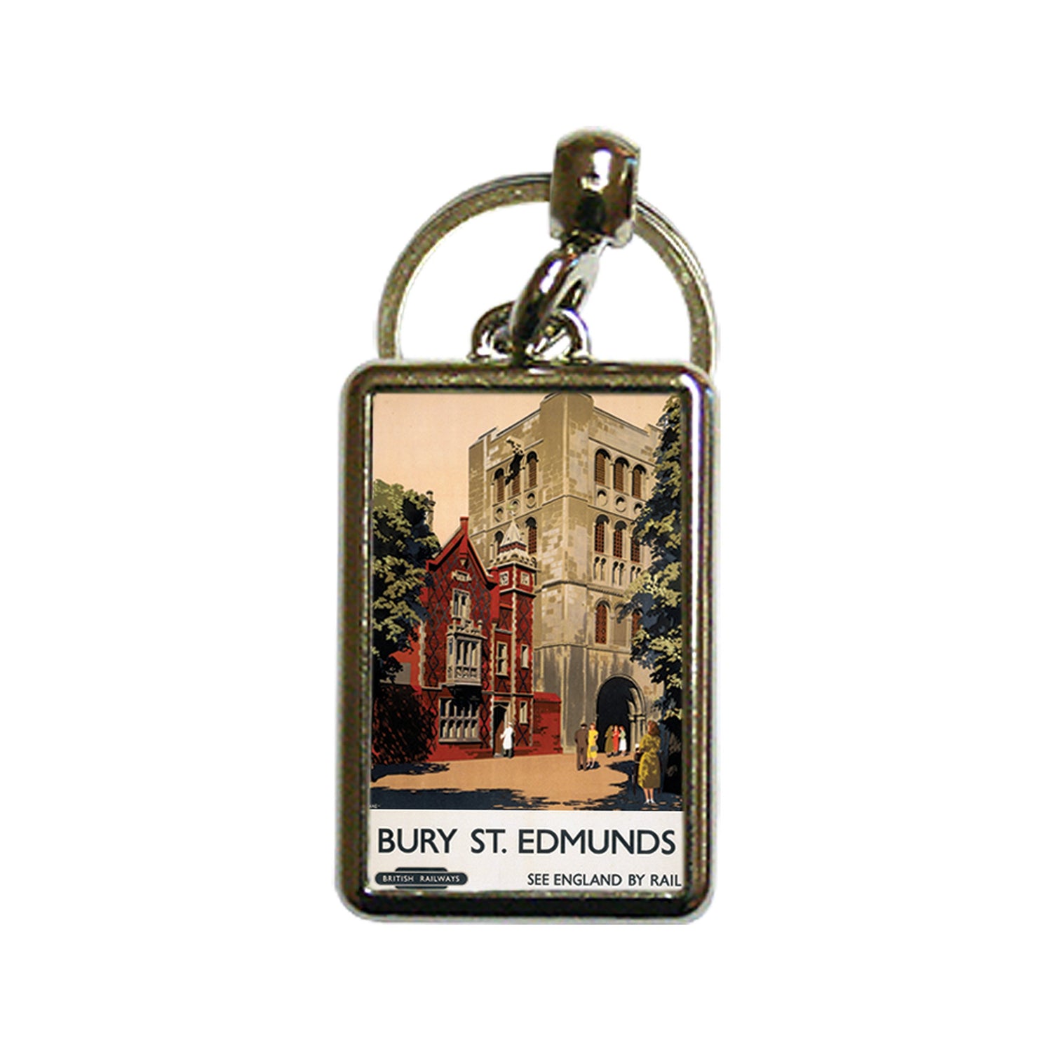 Vintage Railway Poster Keyring of Bury St. Edmunds - Red Building. Keyfob measures 4x3cm. Proudly printed in the UK.