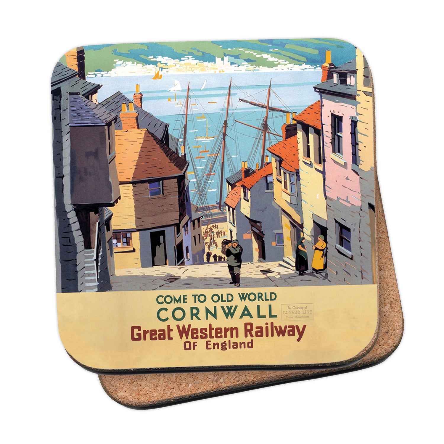 Protect your table surfaces with these durable cork coasters. Beautiful design of Old World Cornwall. Perfect for any Railway Posters enthusiast.