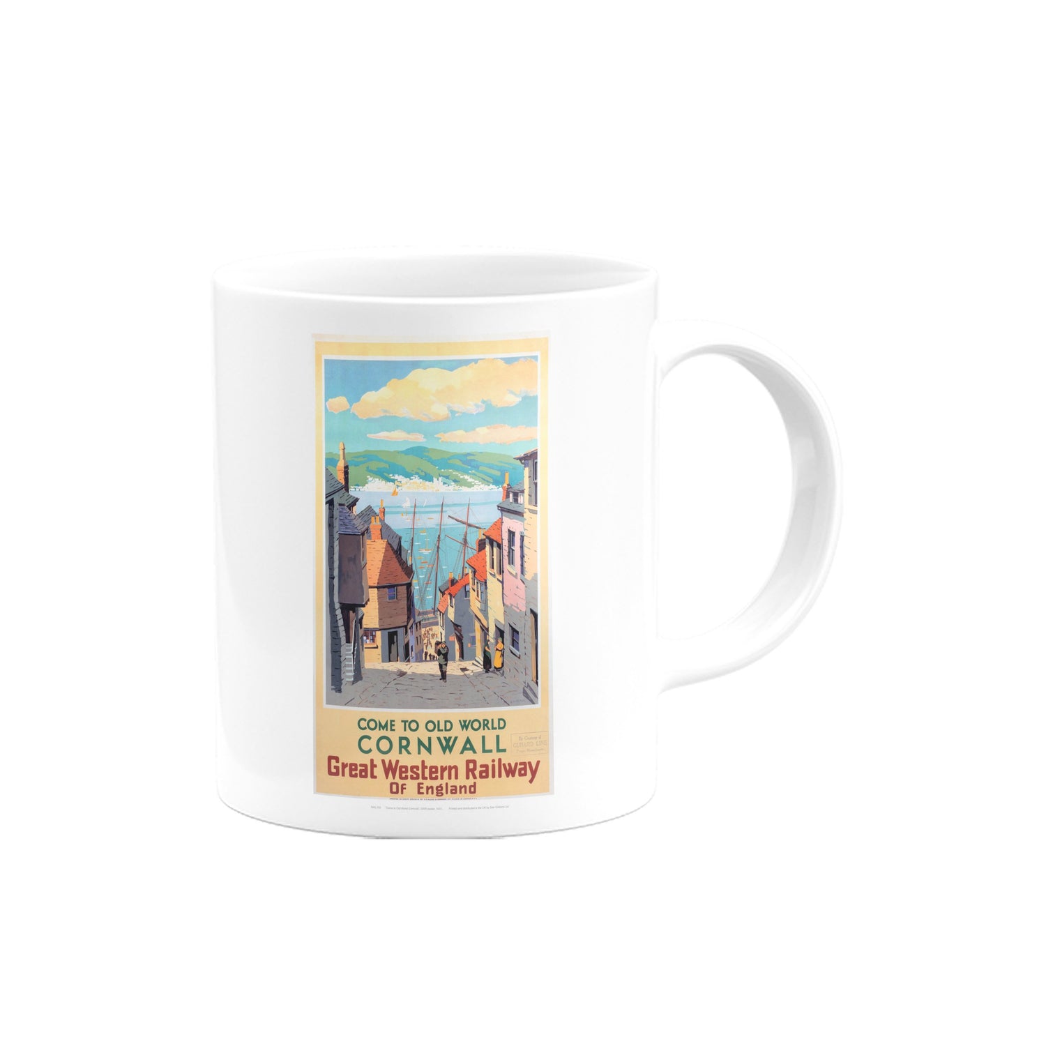 Your favourite Vintage Railway Poster design on a mug. This design of Old World Cornwall is perfect for a nice cup of tea or coffee. Great as a gift to any Railway Poster enthusiast.