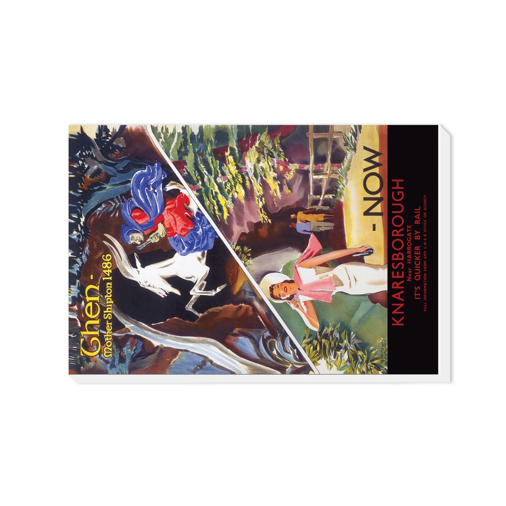 Vintage Railway Poster Canvas Wall Art of Then and now, Knaresborough. Canvases are available in multiple sizes and are all made from eco-friendly FSC accredited materials. All Railway Poster Canvases are made of the best quality materials and are proudly printed in the UK