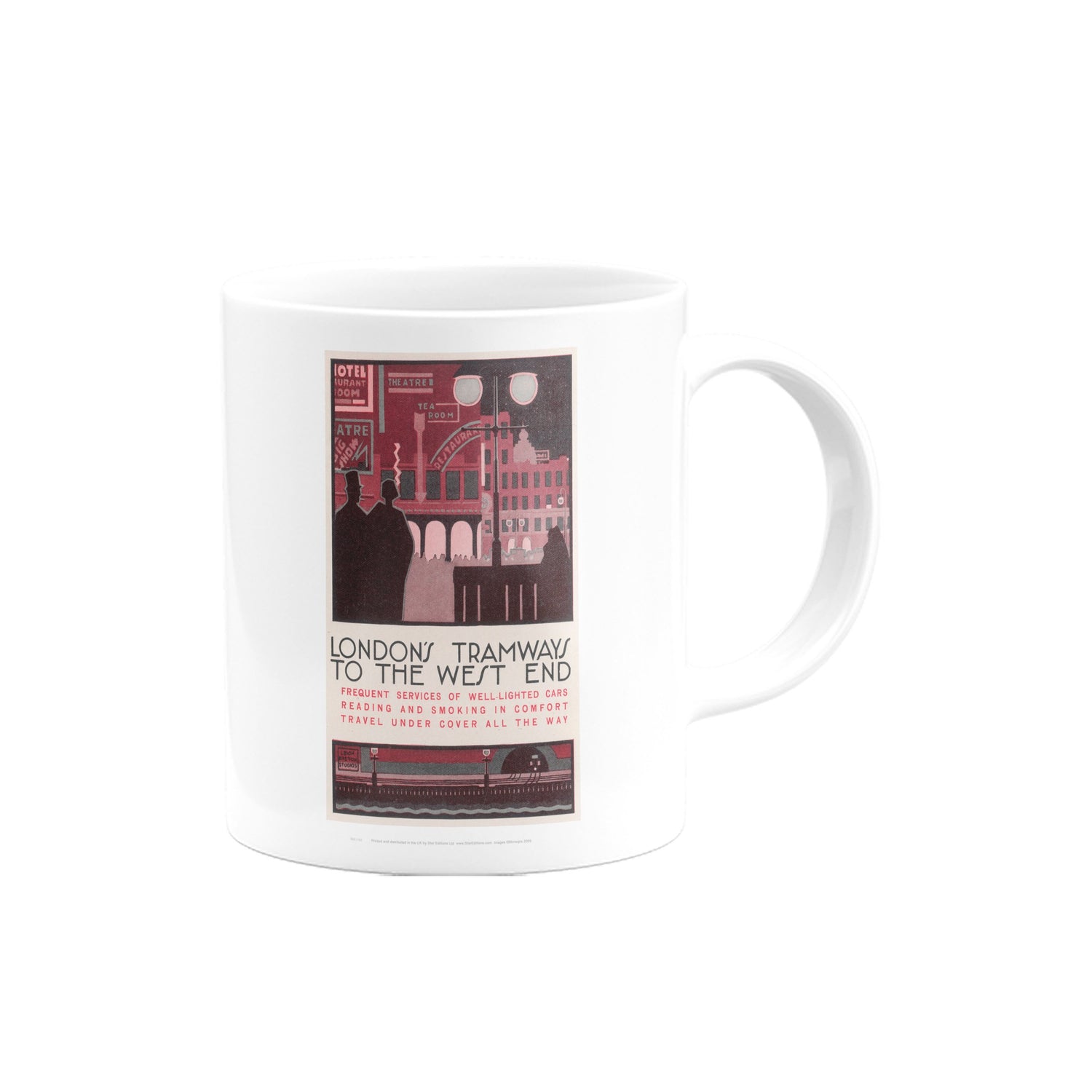 Your favourite Vintage Railway Poster design on a mug. This design of London's Tramways to the West End is perfect for a nice cup of tea or coffee. Great as a gift to any Railway Poster enthusiast.