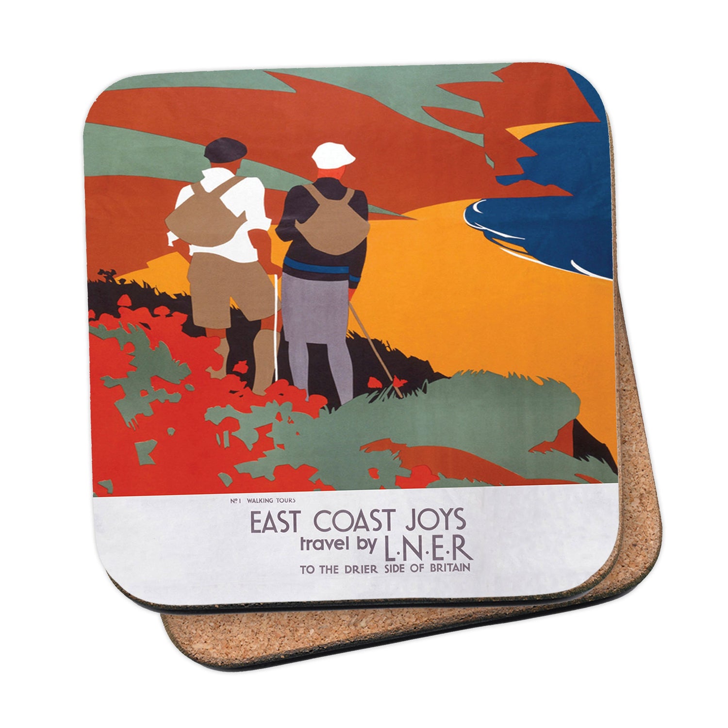 Protect your table surfaces with these durable cork coasters. Beautiful design of East Coast Joys No 1 Walking Tours. Perfect for any Railway Posters enthusiast.