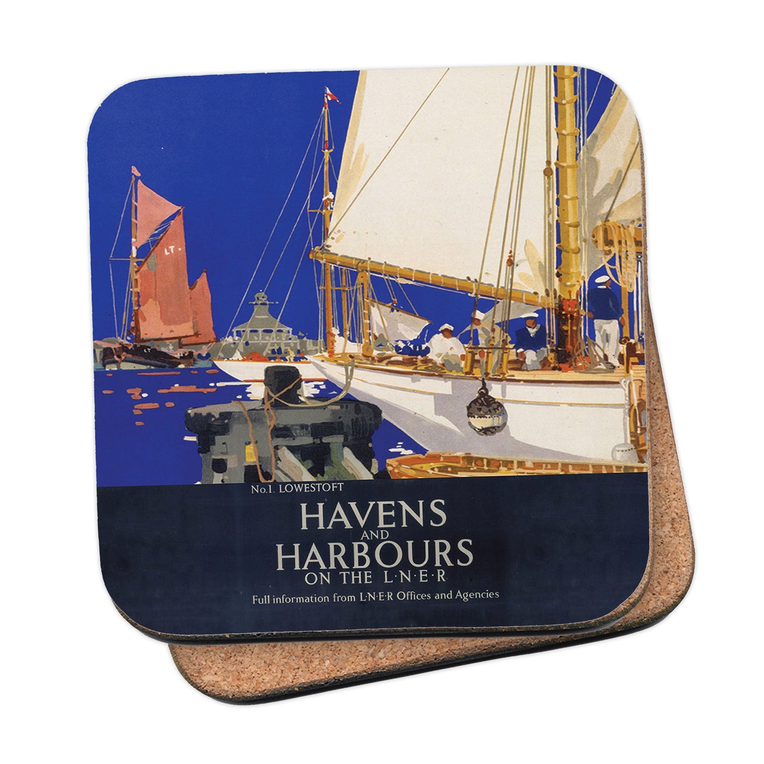 Protect your table surfaces with these durable cork coasters. Beautiful design of Havens and Harbours No 1 Lowestoft. Perfect for any Railway Posters enthusiast.