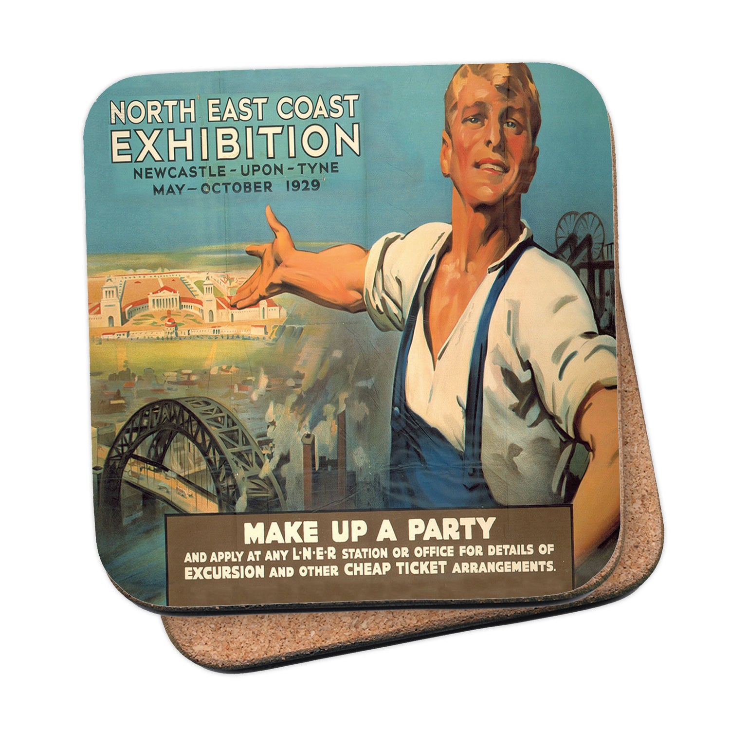Protect your table surfaces with these durable cork coasters. Beautiful design of North East Coast Exhibition. Perfect for any Railway Posters enthusiast.