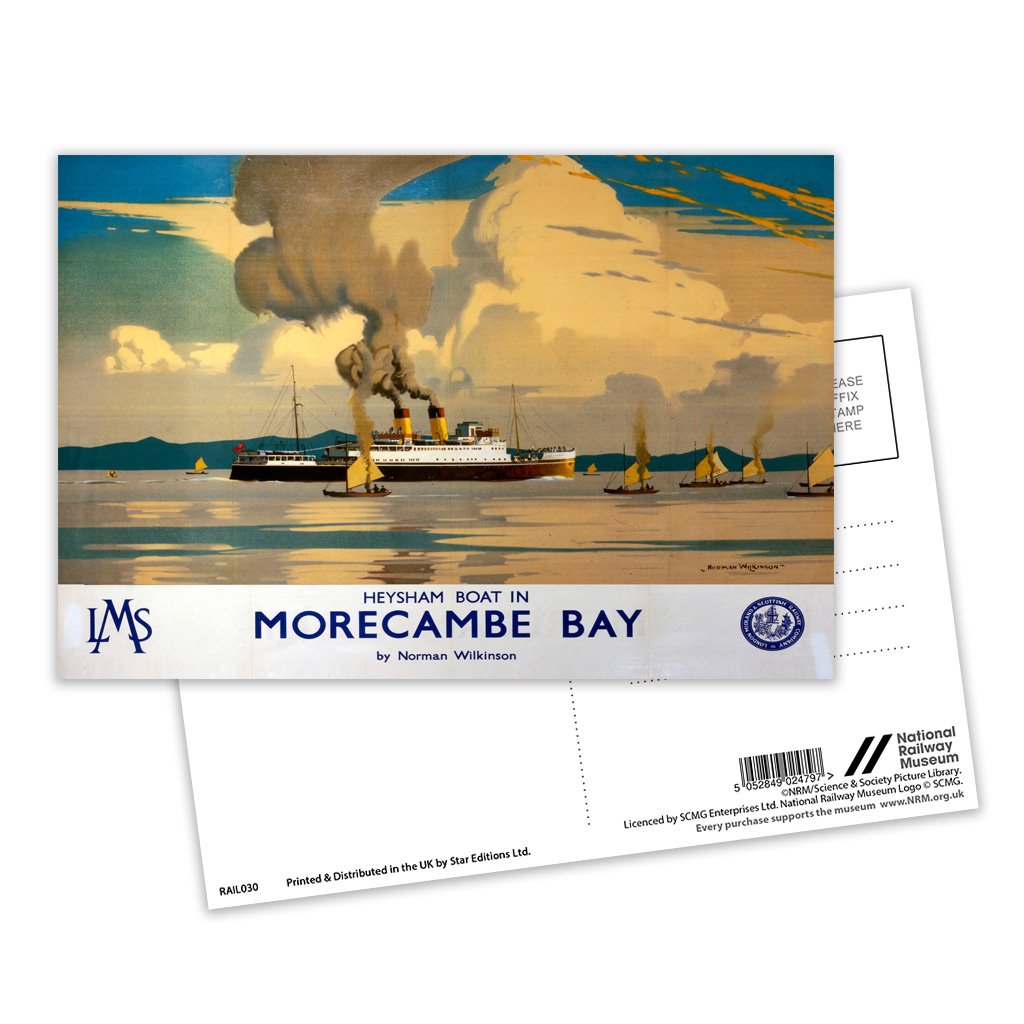 This Vintage Railway Poster postcard pack contains eight postcards. Each printed with the classic poster design of Morecambe Bay - Heysham Boat. All Railway Poster postcards are made from sustainable materials and is FSC accredited.