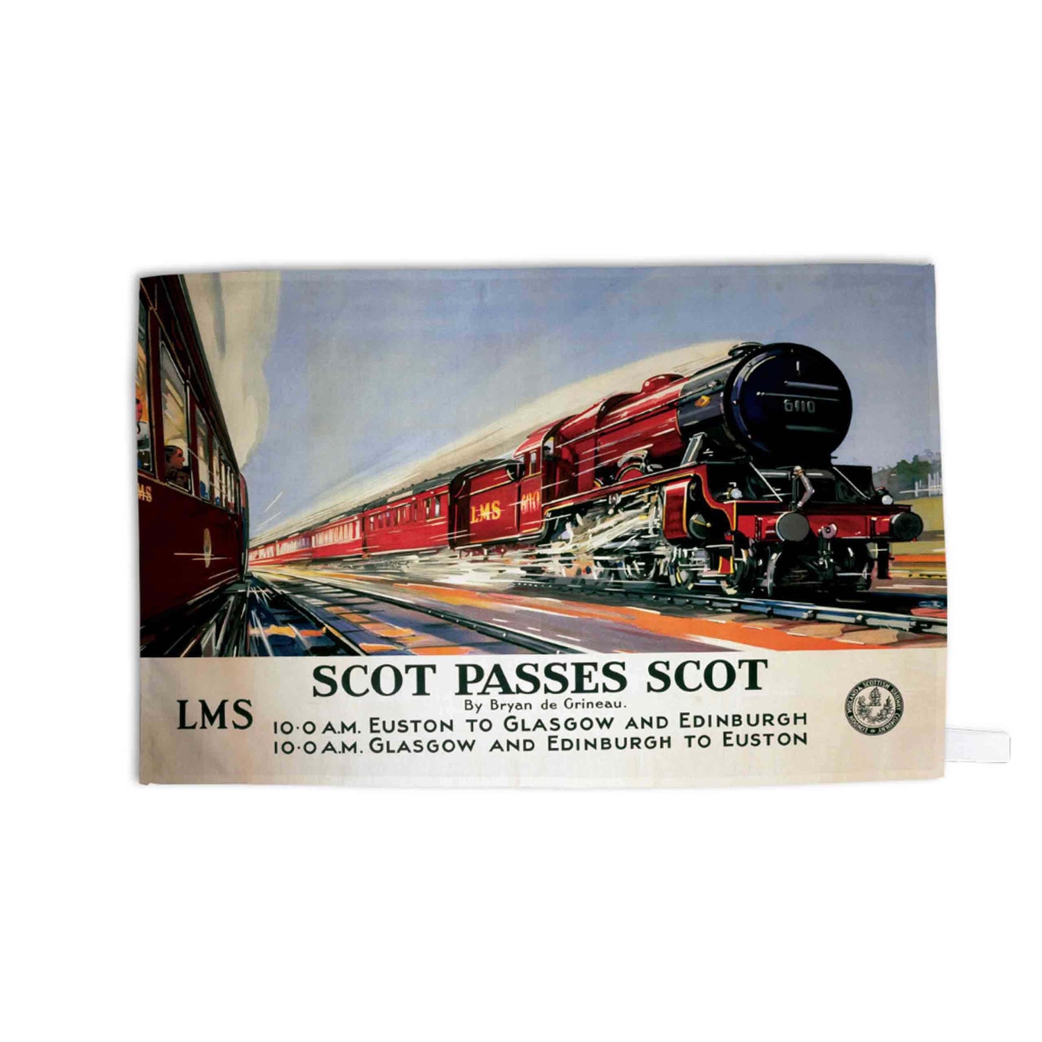 Classic Railway Poster Design on high-quality Tea Towel. This vintage rail design of Scot passes scot will look great in any kitchen. All made from 100% cotton and hemmed on all four sides along with a handy hanging loop.