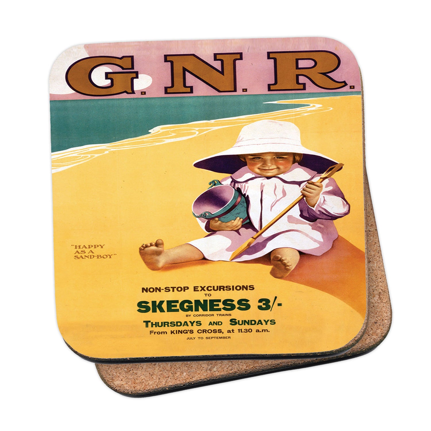 Protect your table surfaces with these durable cork coasters. Beautiful design of Skegness - G.N.R. Perfect for any Railway Posters enthusiast.