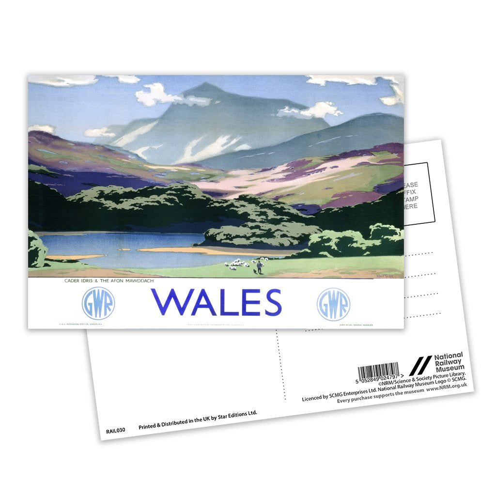 This Vintage Railway Poster postcard pack contains eight postcards. Each printed with the classic poster design of Wales, Cader Idris and The Afon Mawddach. All Railway Poster postcards are made from sustainable materials and is FSC accredited.