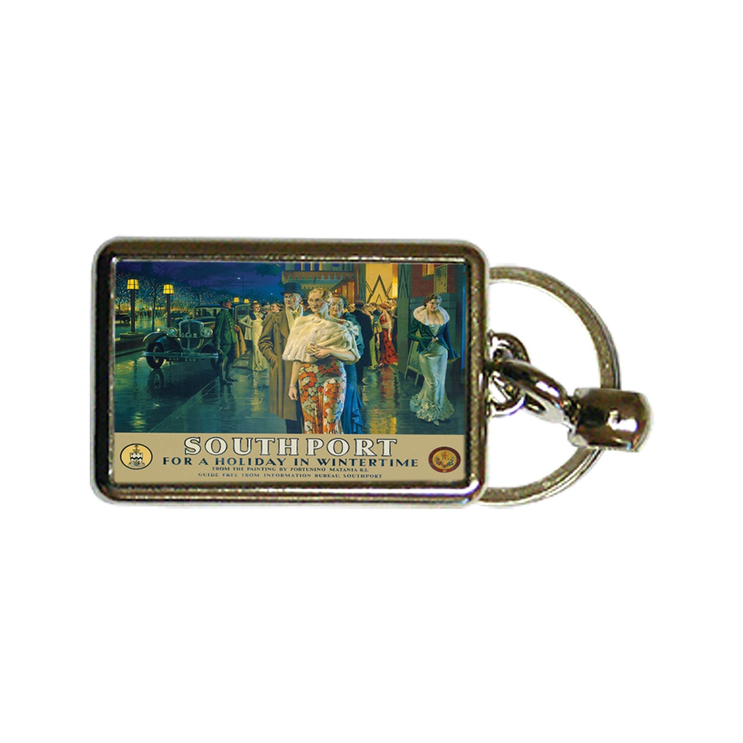Vintage Railway Poster Keyring of Southport for a Holiday in Wintertime. Keyfob measures 4x3cm. Proudly printed in the UK.