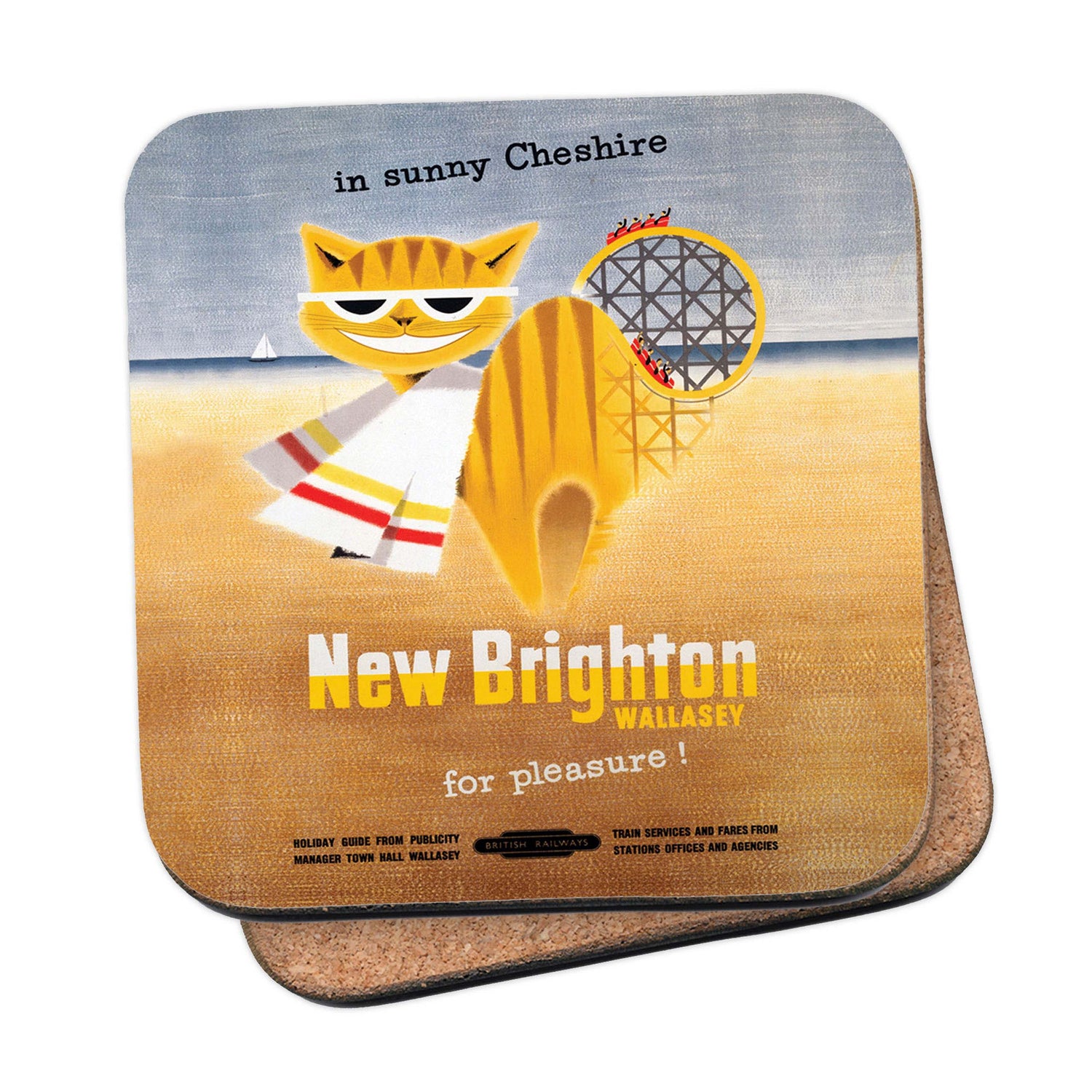 Protect your table surfaces with these durable cork coasters. Beautiful design of New Brighton in Sunny Cheshire. Perfect for any Railway Posters enthusiast.