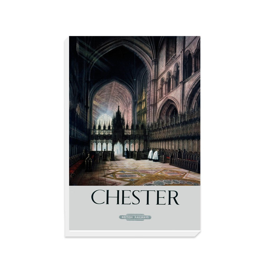 Vintage Railway Poster Canvas Wall Art of Chester Cathedral. Canvases are available in multiple sizes and are all made from eco-friendly FSC accredited materials. All Railway Poster Canvases are made of the best quality materials and are proudly printed in the UK