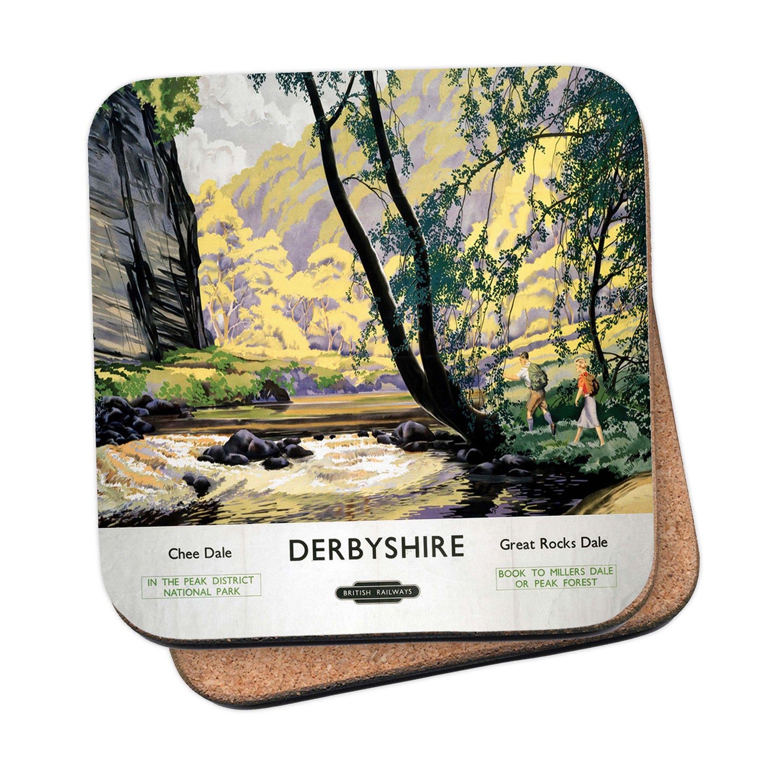 Protect your table surfaces with these durable cork coasters. Beautiful design of Derbyshire, Chee Dale. Perfect for any Railway Posters enthusiast.