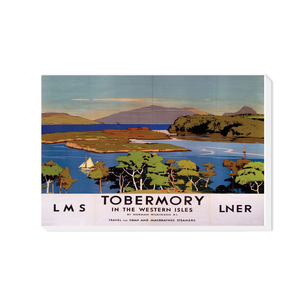 Vintage Railway Poster Canvas Wall Art of Tobermoray in the Western Isles. Canvases are available in multiple sizes and are all made from eco-friendly FSC accredited materials. All Railway Poster Canvases are made of the best quality materials and are proudly printed in the UK