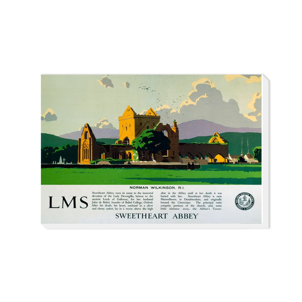 Vintage Railway Poster Canvas Wall Art of Sweetheart Abbey, Maxwelltown, Dumfriesshire. Canvases are available in multiple sizes and are all made from eco-friendly FSC accredited materials. All Railway Poster Canvases are made of the best quality materials and are proudly printed in the UK