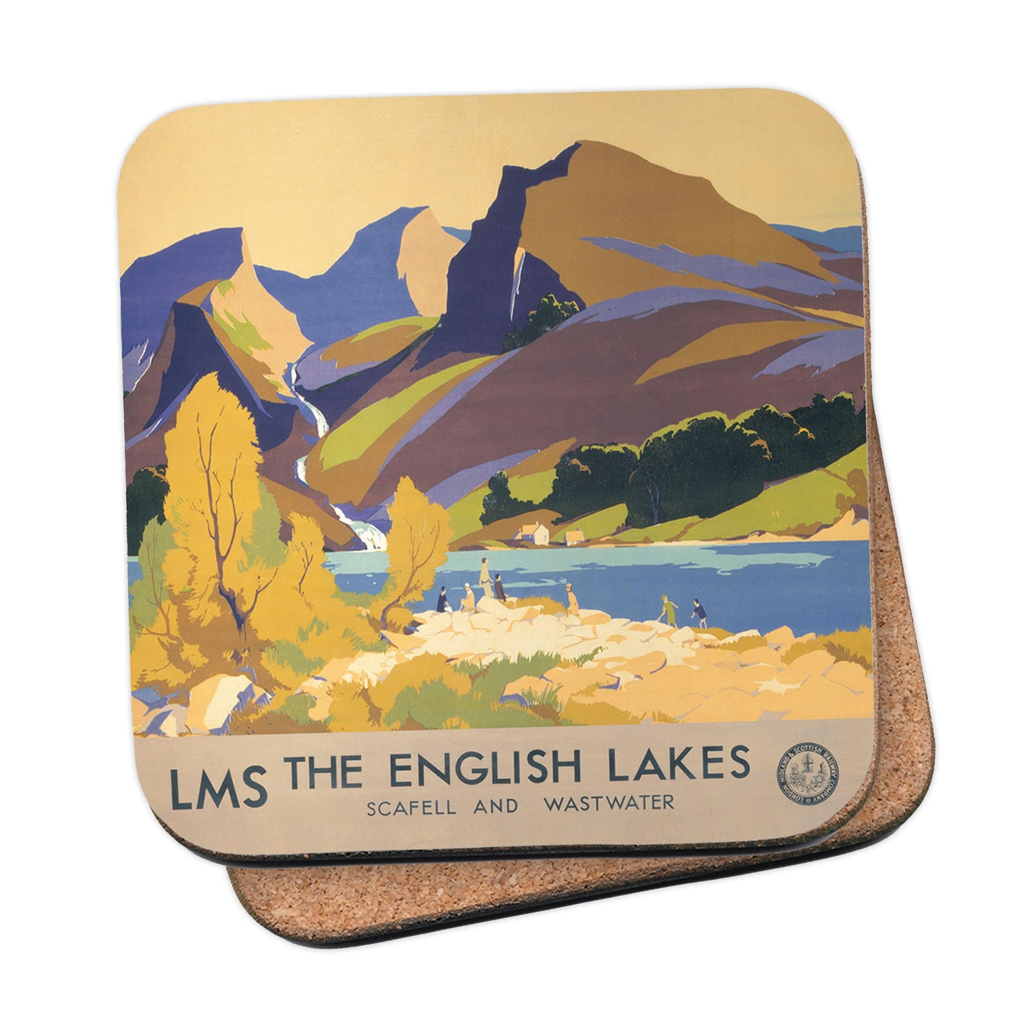 Protect your table surfaces with these durable cork coasters. Beautiful design of The English Lakes, Scafell and Wastwater. Perfect for any Railway Posters enthusiast.